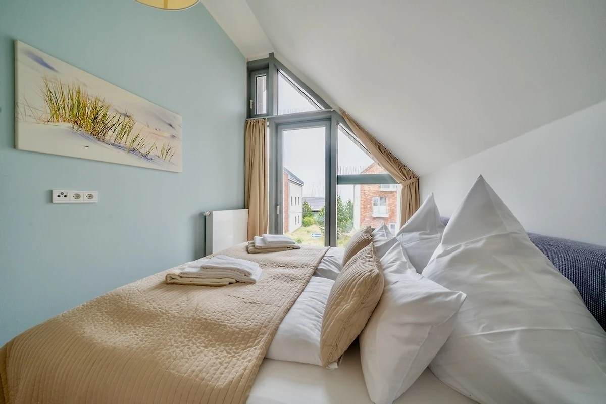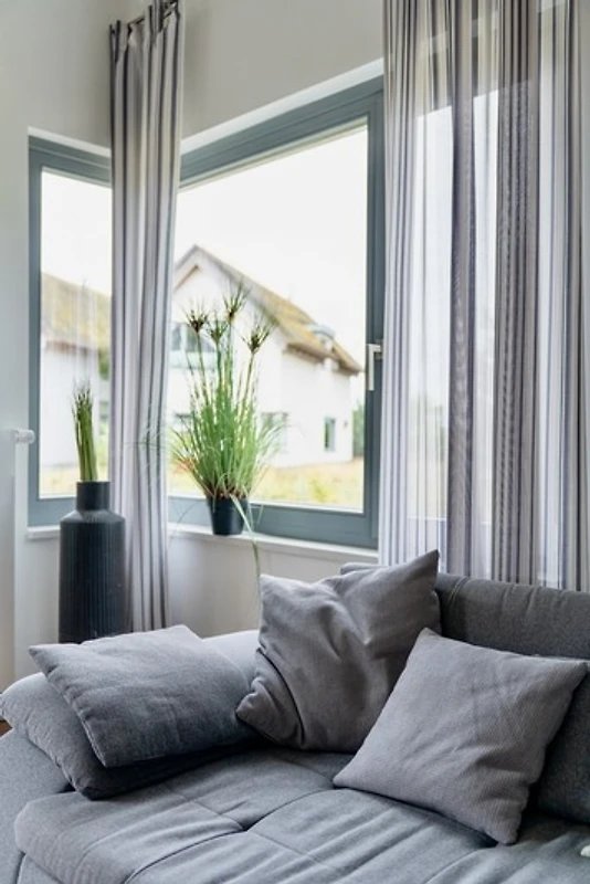 Tastefully furnished single house with light-flooded rooms and lovely reed thatching. The ideal house with lot of comfortable space (2 bathrooms, 3 bedrooms, sauna, oven fireplace...) for your vacation together with your family or friends – only a 5 minutes walk to the beach & sea.