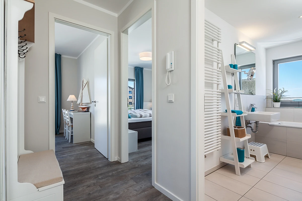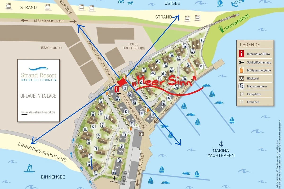 Auch der Fischereihafen und die historische Innenstadt von Heiligenhafen sind in wenigen Minuten zu Fuss erreichbar.