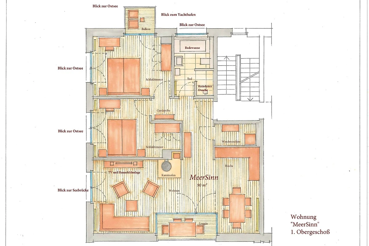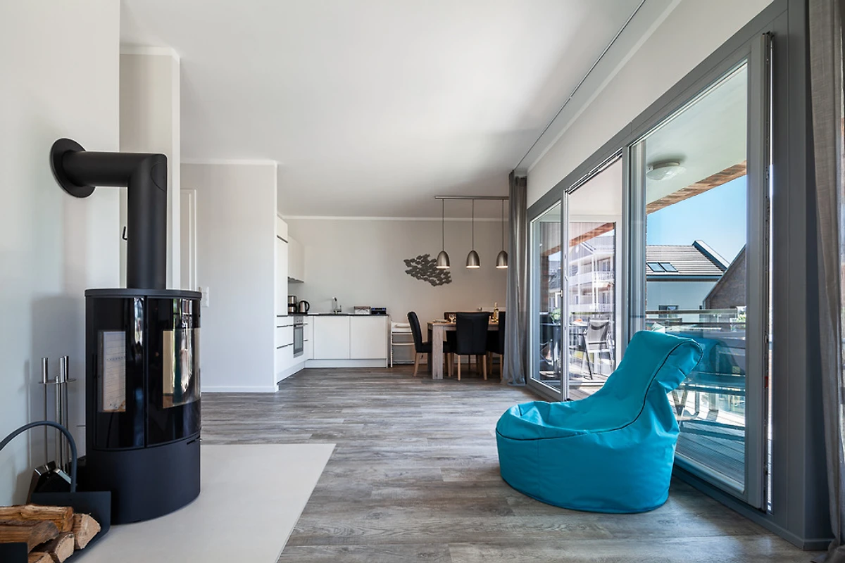 Der Wohnraum ist mit einem modernen Smart-TV und einem hochwertigen Wireless Musiksystem ausgestattet. Hier kann der Gast seine eigenen CD`s abspielen, Internetradio hören oder auch mit seinen Mobilgeräten die eigene Musiksammlung wiedergeben. Eines der Schlafzimmer ist darüber hinaus mit einem weiteren Flat-TV ausgestattet.