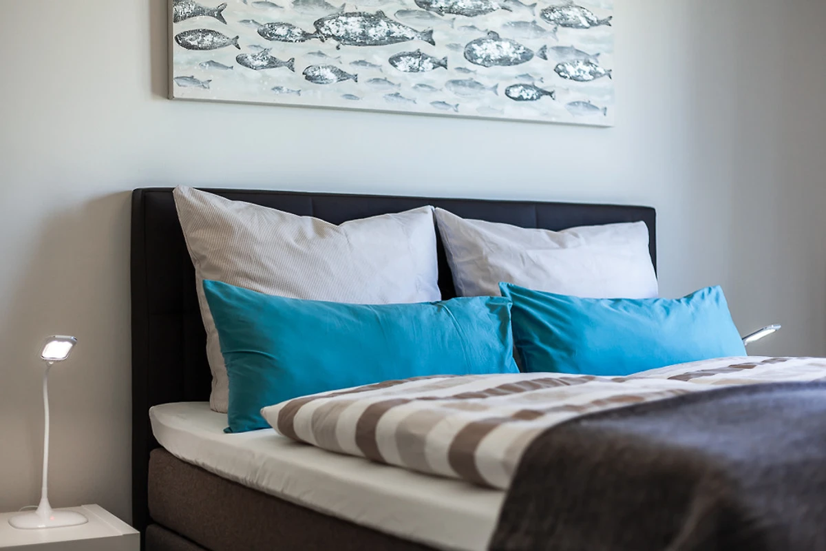 Zwei grosszügige Schlafzimmer mit Boxspring-Doppelbetten ermöglichen 4 Erwachsenen erholsamen Schlaf. Die Sitzecke im Wohnraum kann zusätzlich als Schlafsofa genutzt werden.