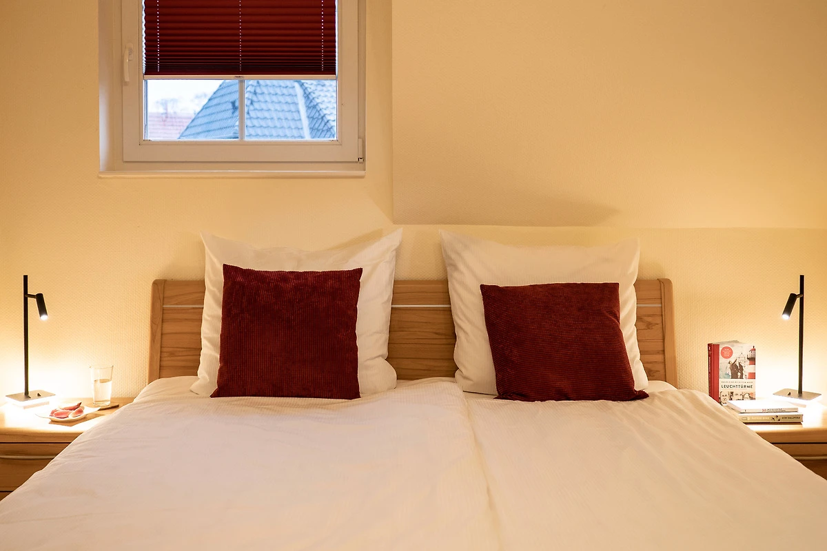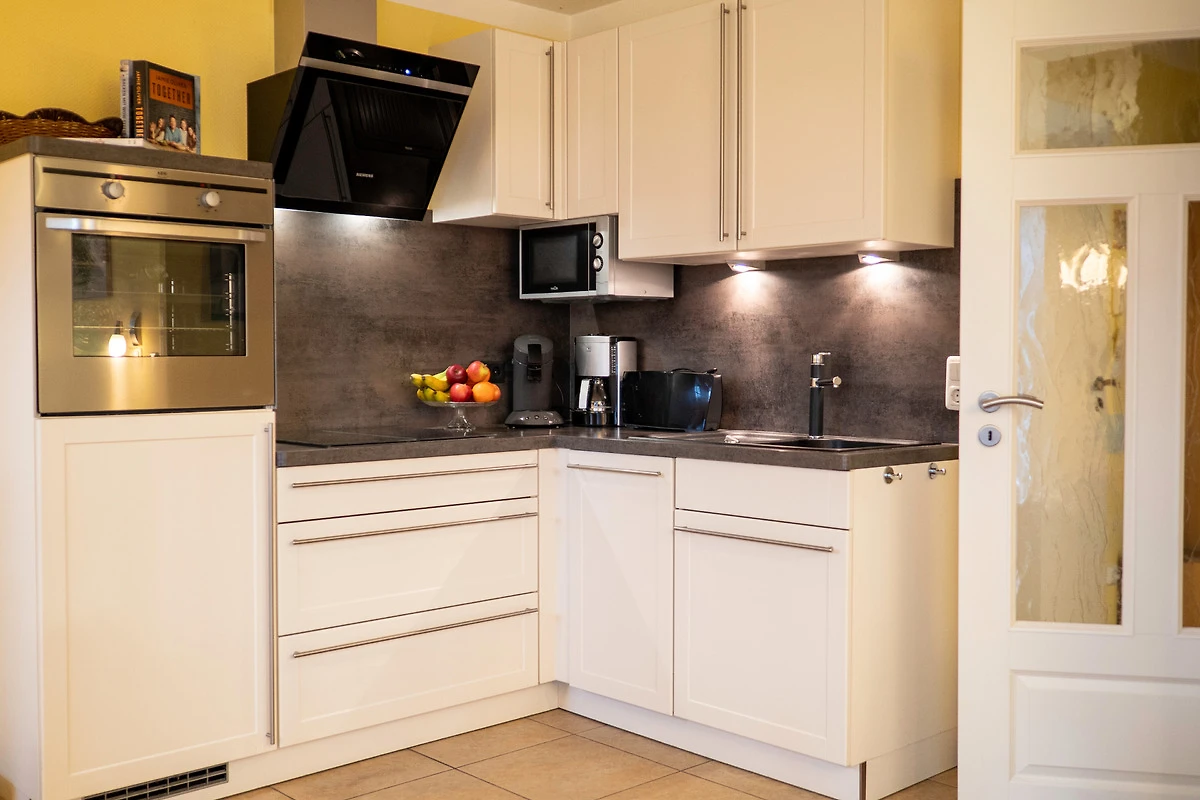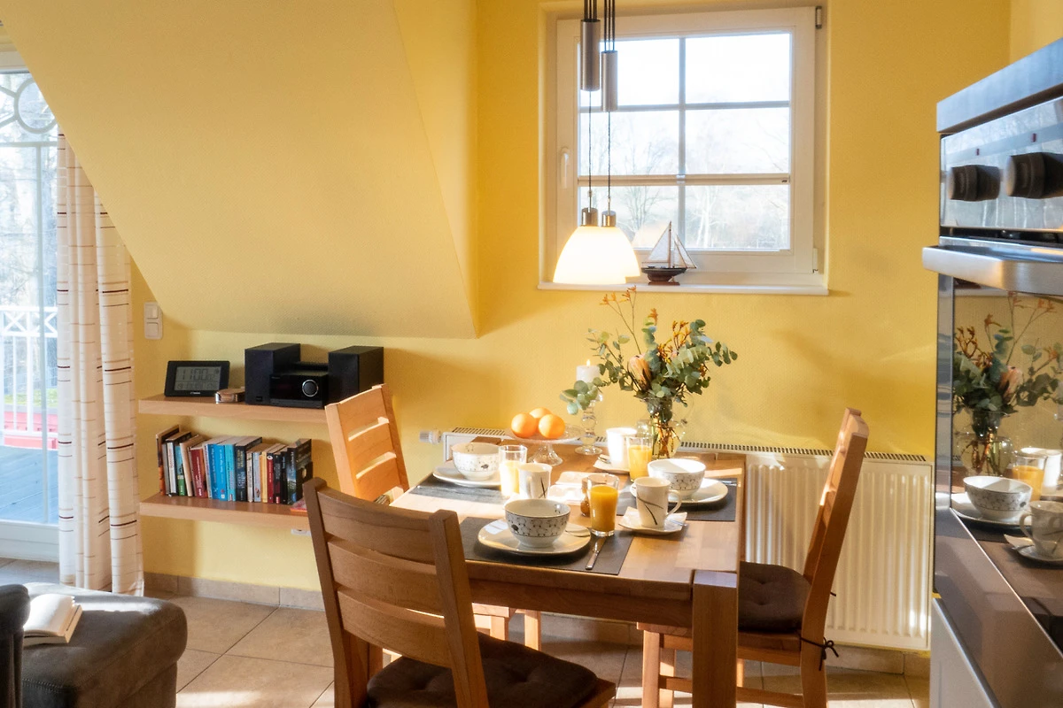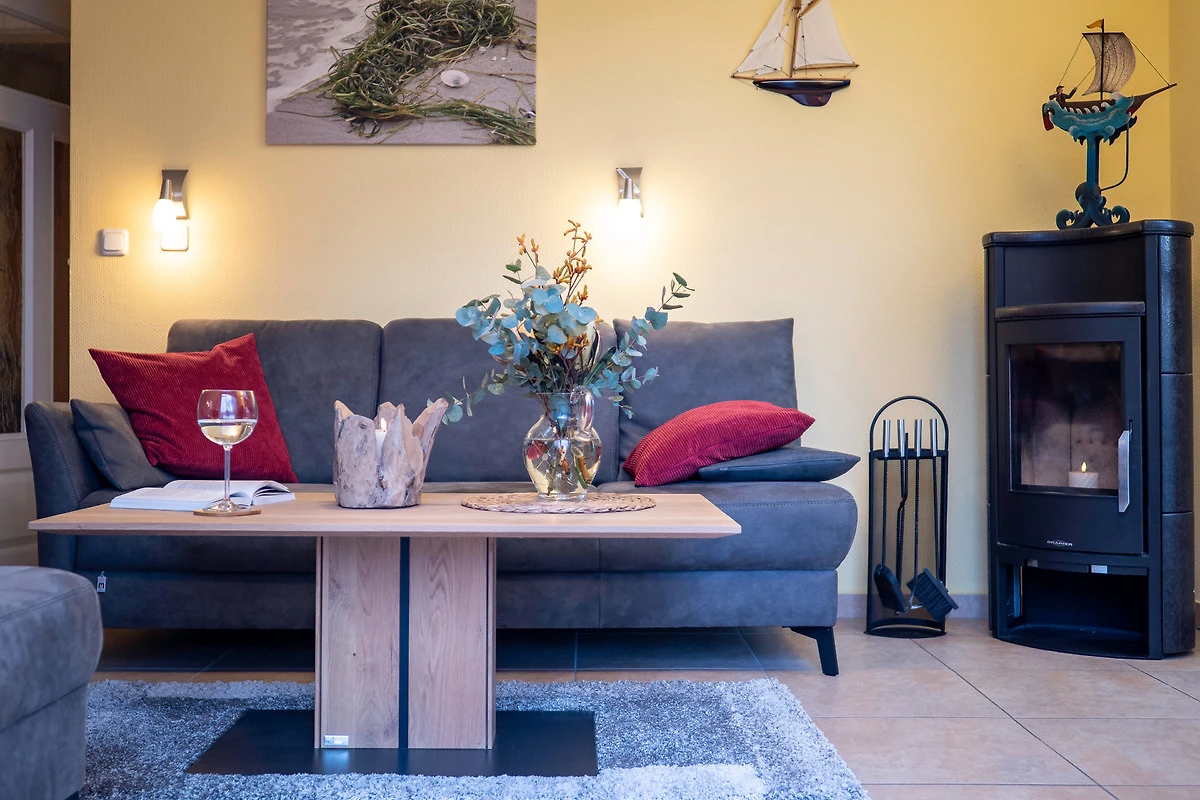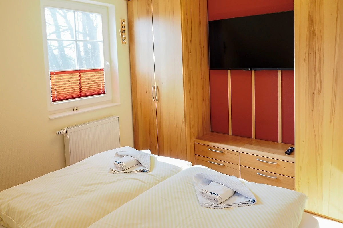 Sie bietet für 2Personen ein gemütliches Ambiente und ist liebevoll und hochwertig eingerichtet. Im Wohnzimmer sorgt ein 55"- Flachbildschirm für Fernseh-Vergnügen, das Schlafzimmer verwöhnt Sie mit einem 50"- Flachbildschirm. Ein Kaminofen im Wohnzimmer sorgt für behagliche Wärme an kalten Tagen. Das exklusive Bad ist mit einer Fussbodenheizung ausgestattet. Die Wohnung besitzt 2 grosse Balkone ( Süd - und Westlage ) mit Blick ins Grüne. Beide Balkone sind mit bequemen, verstellbaren Klappstühlen mit Liegefunktion, Fusshocker, Tisch und Sonnenschirm ausgestattet. Ebenfalls zur Wohnung gehört ein eigener Abstellraum für Fahrräder und Strandutensilien. Kostenloser WLAN-Anschluss.