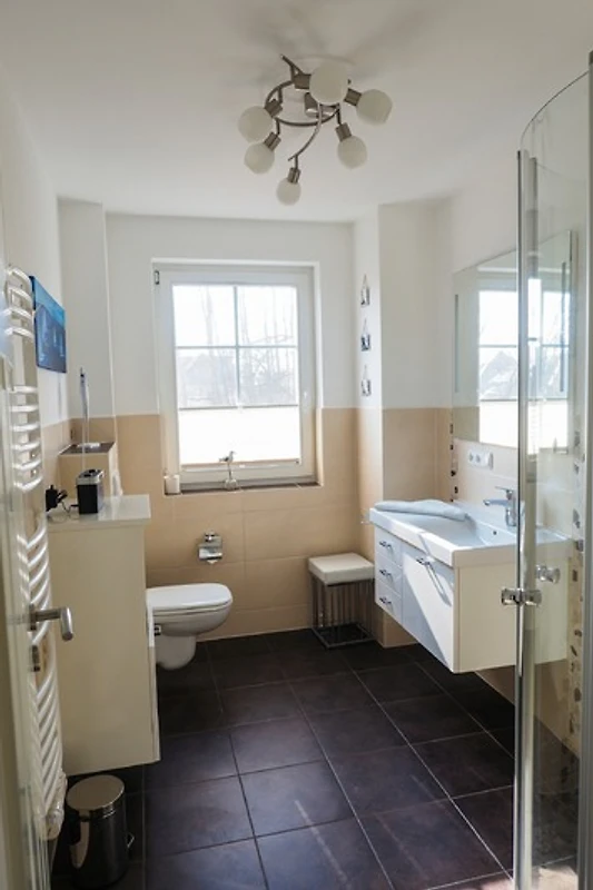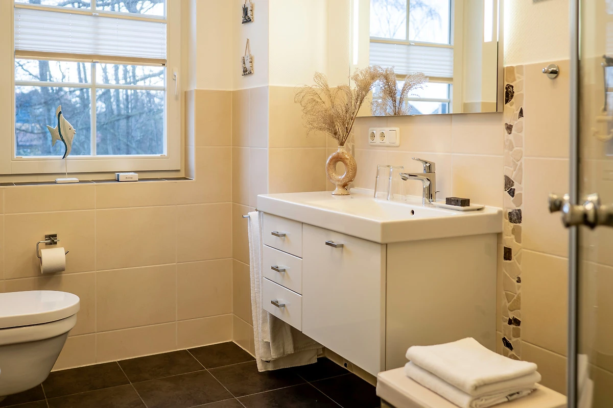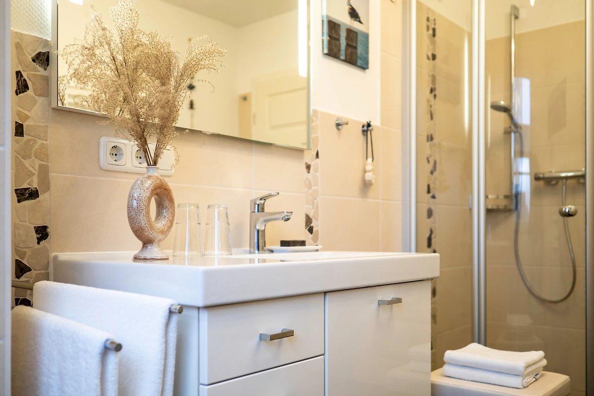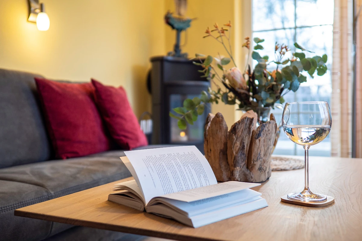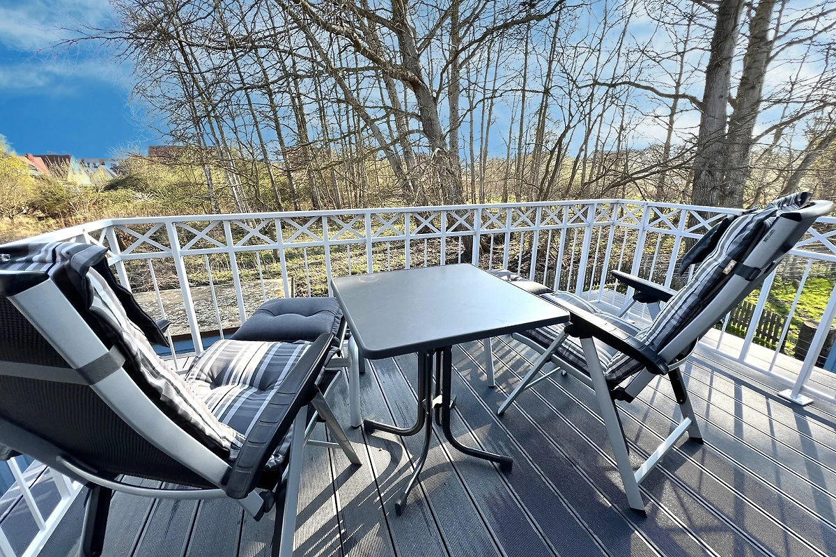 Sie bietet für 2Personen ein gemütliches Ambiente und ist liebevoll und hochwertig eingerichtet. Im Wohnzimmer sorgt ein 55"- Flachbildschirm für Fernseh-Vergnügen, das Schlafzimmer verwöhnt Sie mit einem 50"- Flachbildschirm. Ein Kaminofen im Wohnzimmer sorgt für behagliche Wärme an kalten Tagen. Das exklusive Bad ist mit einer Fussbodenheizung ausgestattet. Die Wohnung besitzt 2 grosse Balkone ( Süd - und Westlage ) mit Blick ins Grüne. Beide Balkone sind mit bequemen, verstellbaren Klappstühlen mit Liegefunktion, Fusshocker, Tisch und Sonnenschirm ausgestattet. Ebenfalls zur Wohnung gehört ein eigener Abstellraum für Fahrräder und Strandutensilien. Kostenloser WLAN-Anschluss.