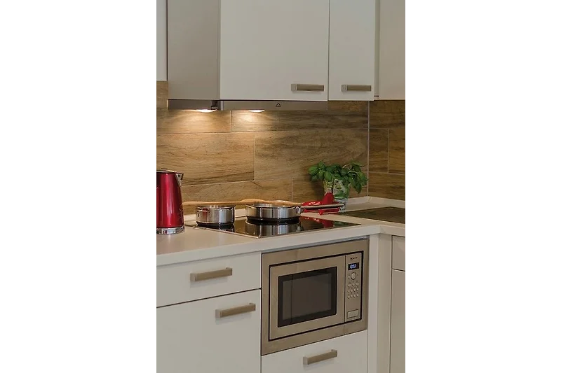 Wir haben uns in dem Appartement gleich wohlgefühlt. Es ist geräumig und stilvoll eingerichtet. Die Küchenausstattung ist perfekt für eine Selbstversorgung. Aufgrund der zentralen und gleichzeitig ruhigen Lage, haben wir uns gut erholt. Es sind nur etwa je 8-10 Gehminuten zum Strand, zum Hafen, so wie zum Supermarkt