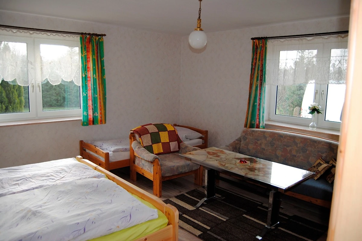 Das Ein-Zimmer-Appartement ist gemütlich eingerichtet und bietet Platz für maximal drei Personen und ist ca. 35m² gross. Das Zimmer ist mit einem Doppelbett (2 x 0,90m x 2,00m) und einem Einzelbett (0,90m x 2,00m) ausgestattet. Über den Winter wurden einige Renovierungsarbeiten durchgeführt, sodass das Zimmer jetzt mit allergikerfreundlichem Laminat ausgestattet ist. Das Appartement hat eine eigene Küche und ein eigenes Badezimmer mit Dusche und WC. Die Küchenzeile ist komplett mit Besteck und Geschirr bestückt und ist zusätzlich noch mit Kaffeemaschine, Toaster und Wasserkocher ausgestattet. Es besteht Zentralheizung, Heizkörper sind in jedem Raum zu finden.