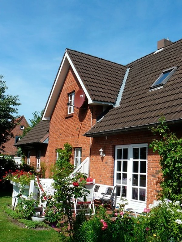 Die Ferienwohnung erstrahlt in einer schönen und gemütlichen Atmosphäre. Sie befindet sich in einem modernen Landhaus mit eigenem Eingang und einer Terrasse in Süd-West-Lage, die zum Entspannen oder Lesen eines guten Buches einlädt.