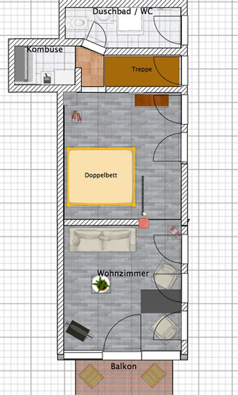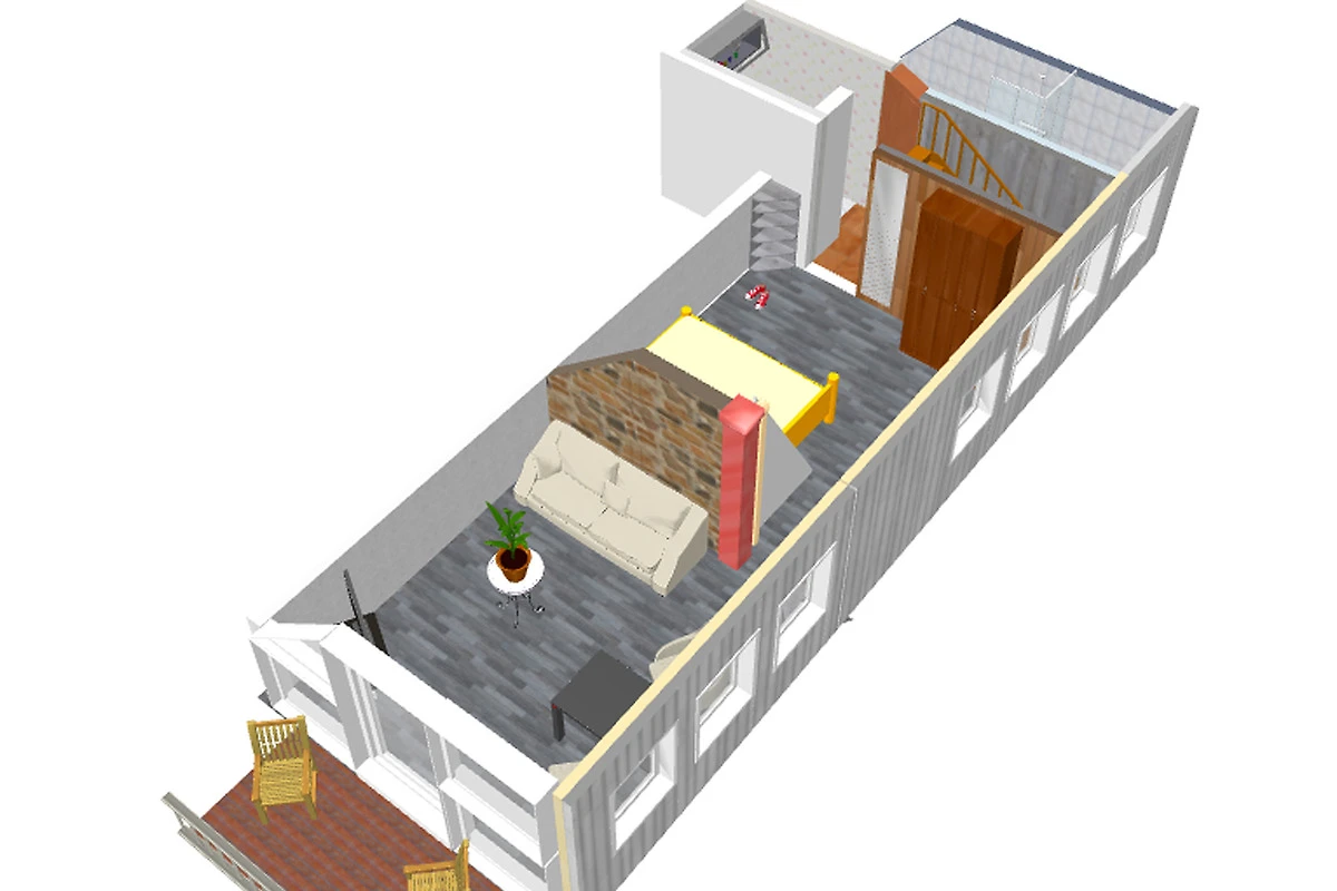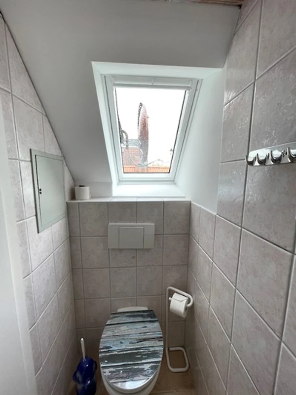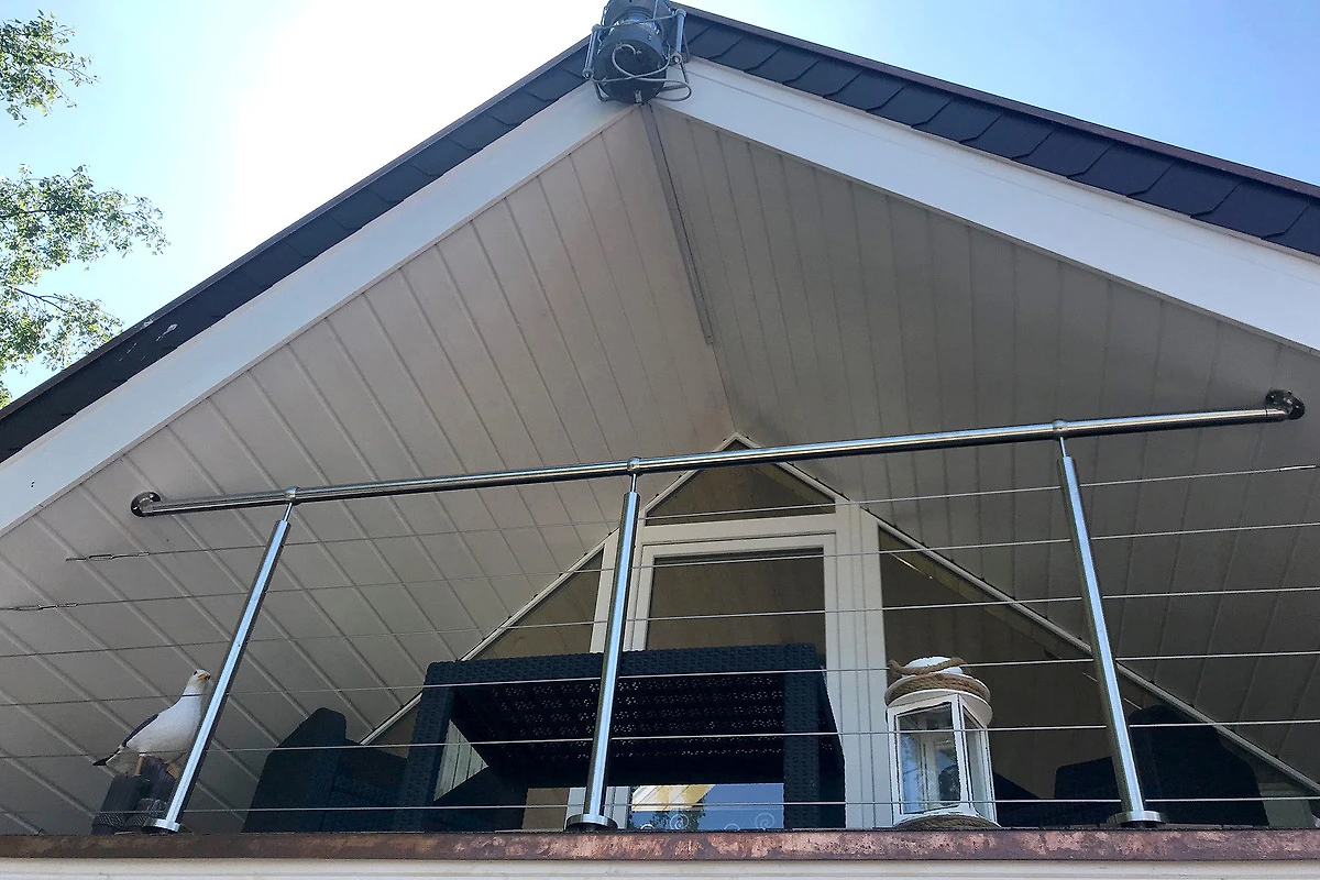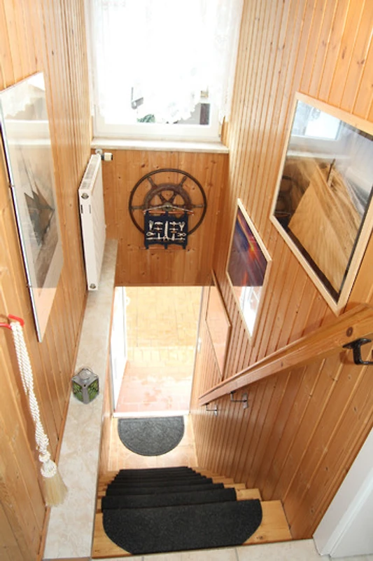 Der Zugang zur Wohnung erfolgt über eine Treppe, ähnlich wie hinauf in die Kommandobrücke eines Containerschiffes. Menschen mit Gehbehinderung raten wir von der Buchung dieser Unterkunft ab, für alle Anderen ist der Weg hinauf in das Piratennest kein Problem.
