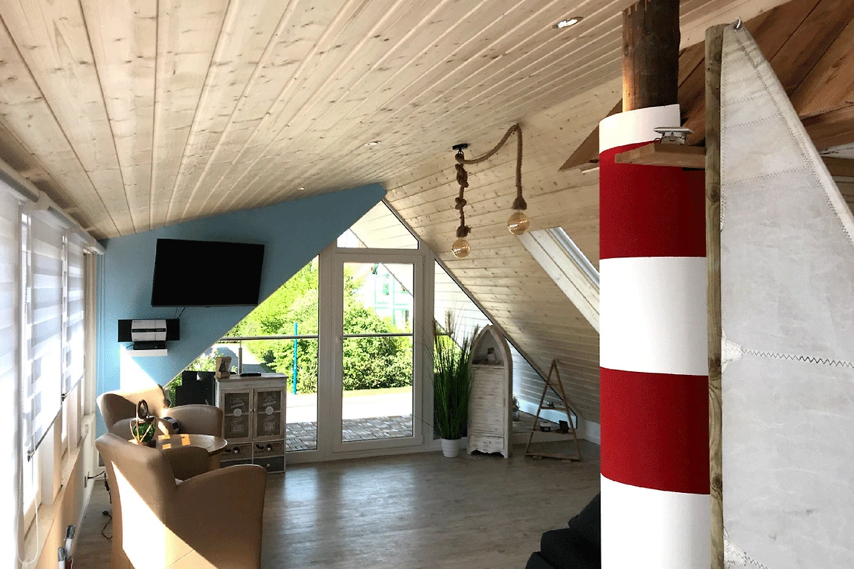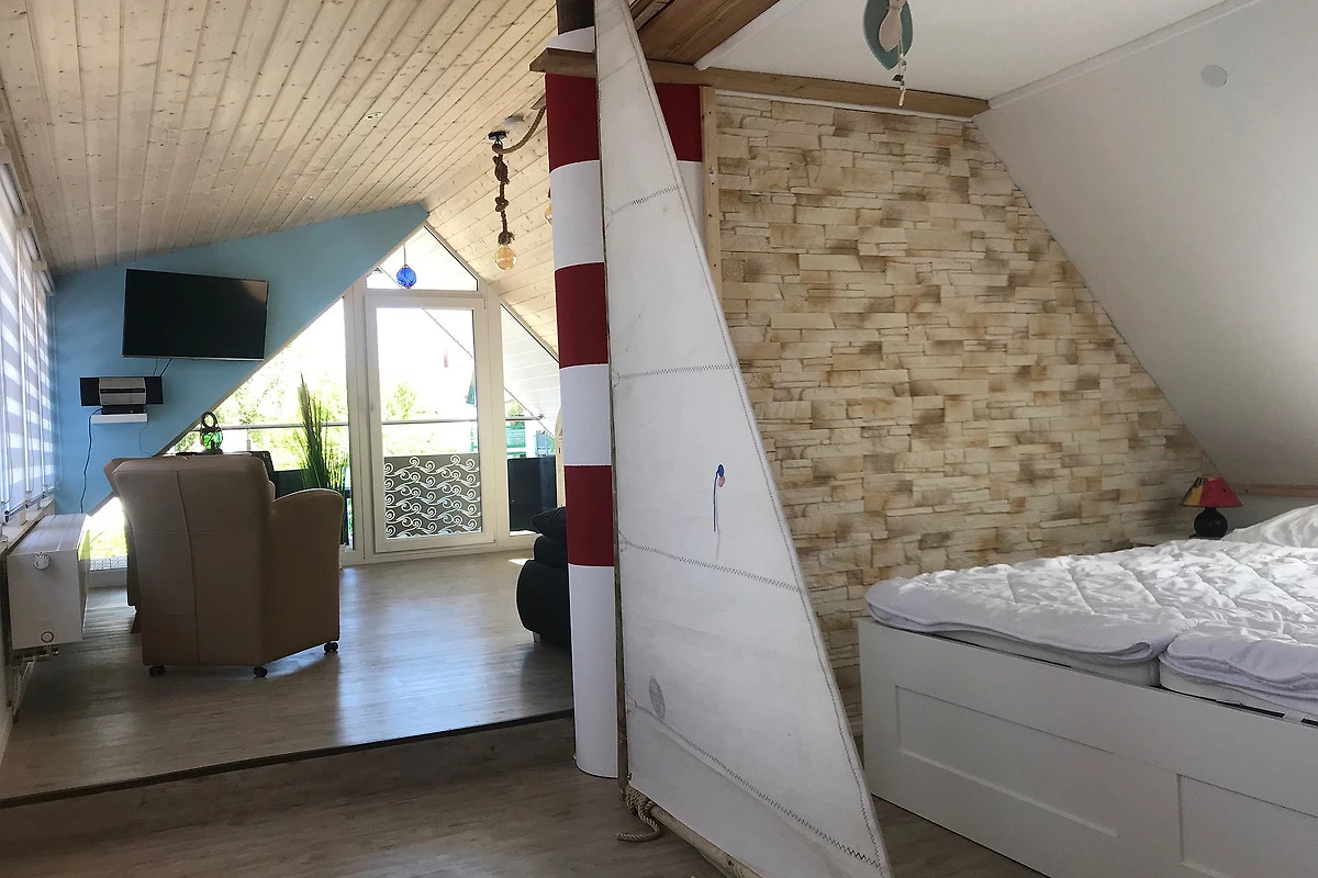 Das freundlich helle Dachgeschoss Appartment "Brückendeck" wurde 2018 um einen zusätzlichen Wohnraum mit überdachten Balkon erweitert und saniert. Es ist ideal geeignet für 2 Personen.