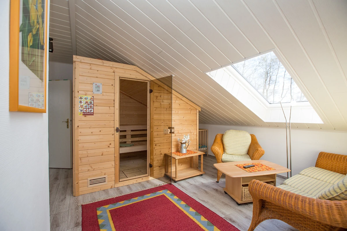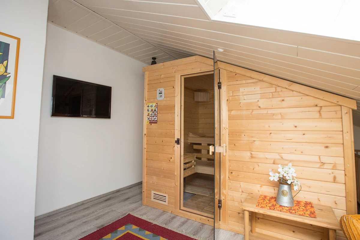 2 Schlafzimmer (ein Schlafzimmer mit Doppelbett und ein Dreibettzimmer), 1 Badezimmer, Sauna und Sitzecke mit zweitem Flachbild-TV.