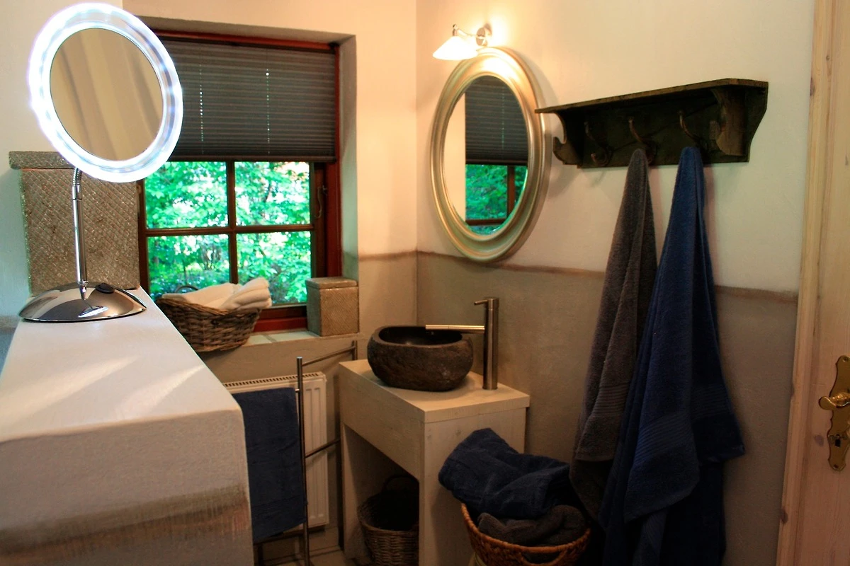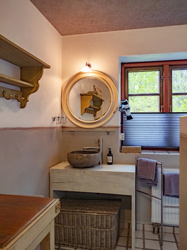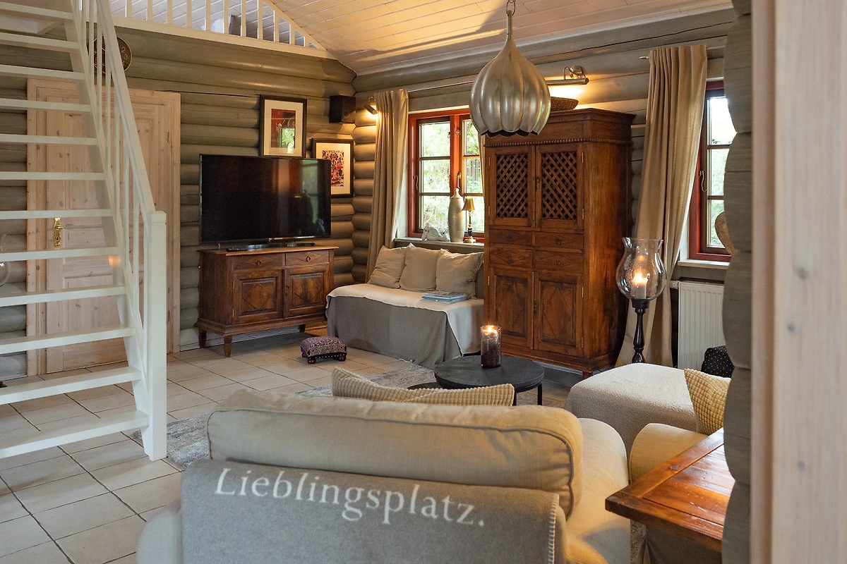 Das Ferienhaus beeindruckt mit einem stilvollen Landhausambiente, das mit viel Liebe zum Detail gestaltet wurde. Hier erwartet Sie eine warme und gemütliche Atmosphäre, in der Sie sich rundum wohlfühlen werden. Zu den besonderen Highlights zählt eine grosszügige 40 Quadratmeter grosse Landhaus Wohnküche mit einem Specksteinofen und direktem Zugang zum Garten. Im kuscheligen Wohnzimmer finden Sie einen DVD-Player, einen Flachbildfernseher, eine Stereoanlage, WLAN und einen offenen Kamin. Auf der Empore befindet sich ein offener Schlafraum mit einem 181 cm x 210 cm grossen Landhausbett und zwei Fenstern mit französischem Balkon. Ein weiteres Schlafzimmer ist mit einem 181 cm x 210 cm grossen Hotel-Boxspringbett Deluxe ausgestattet. Das grosszügige barrierefreie Duschbad verfügt über zwei Fenster und zwei Waschbecken. Dank des natürlichen Baustoffs Holz, bietet das Haus ein gesundes Wohnklima.