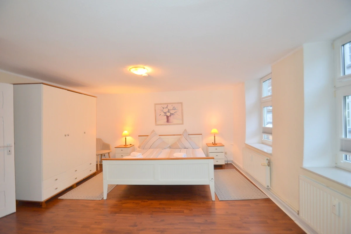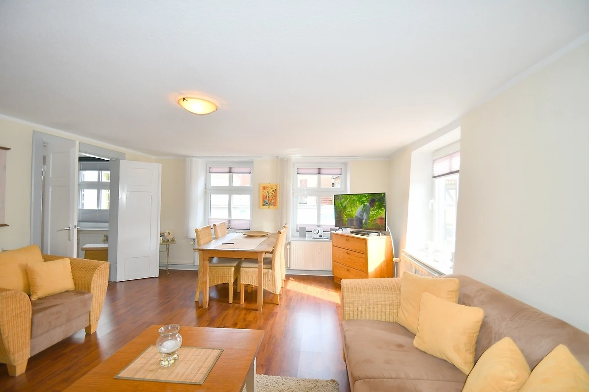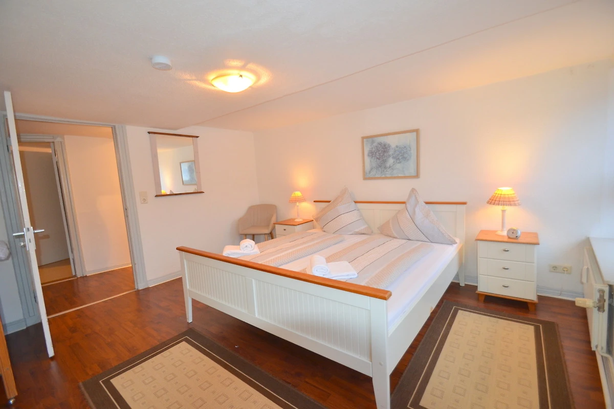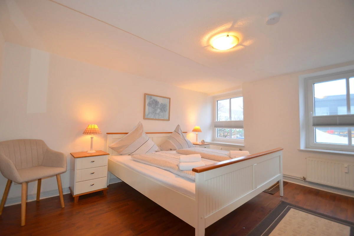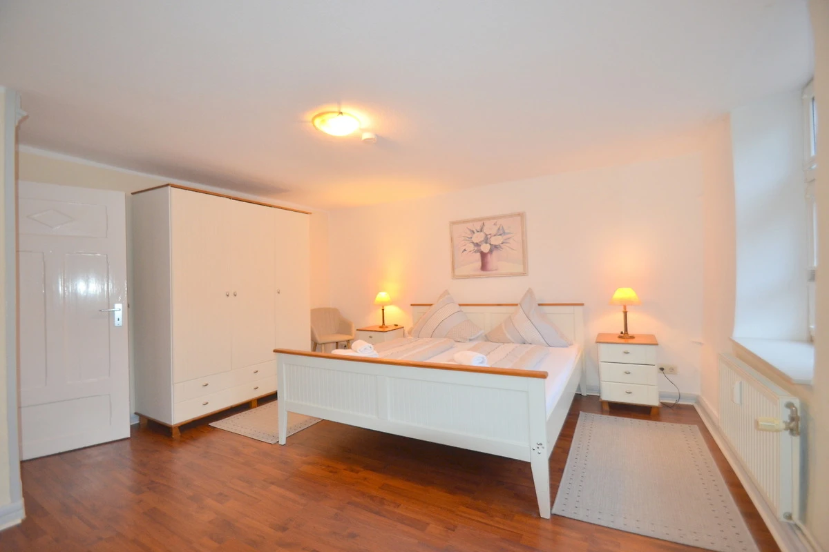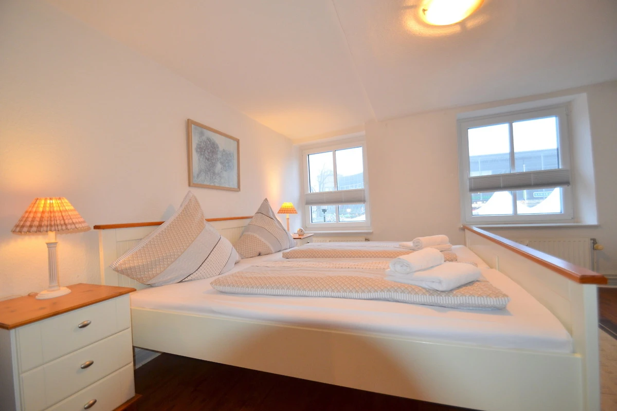 Die Ferienwohnung "Nord-Ostsee-Kanal" im Gästehaus am Schiffbrückenplatz in Rendsburg verfügt über zwei separate Schlafzimmer mit Doppelbetten, einen Wohnraum mit Sitzgarnitur und Esstisch, Flur, Küche und Duschbad. Zusammen bieten diese Räumlichkeiten eine grosszügige Wohnatmosphäre und ermöglichen auch längere Aufenthalte im 1. Obergeschoss. Auf Wunsch wird Ihnen gerne kostenlos ein Kinderbett für Kleinkinder zur Verfügung gestellt.