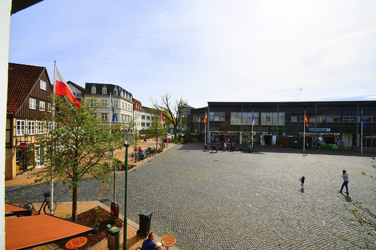 Die Wohnung befindet sich in zentraler Innenstadtlage direkt am Schiffbrückenplatz. Einkaufsmöglichkeiten und Restaurants sind in unmittelbarer Nähe, ebenso wie der Obereider/Yachthafen, das Schwimmzentrum, die Untereider, Museen und das Theater.