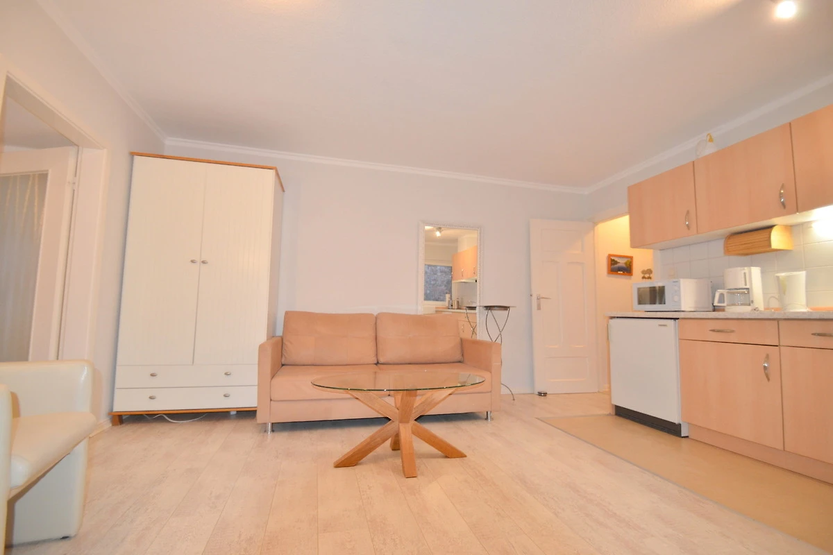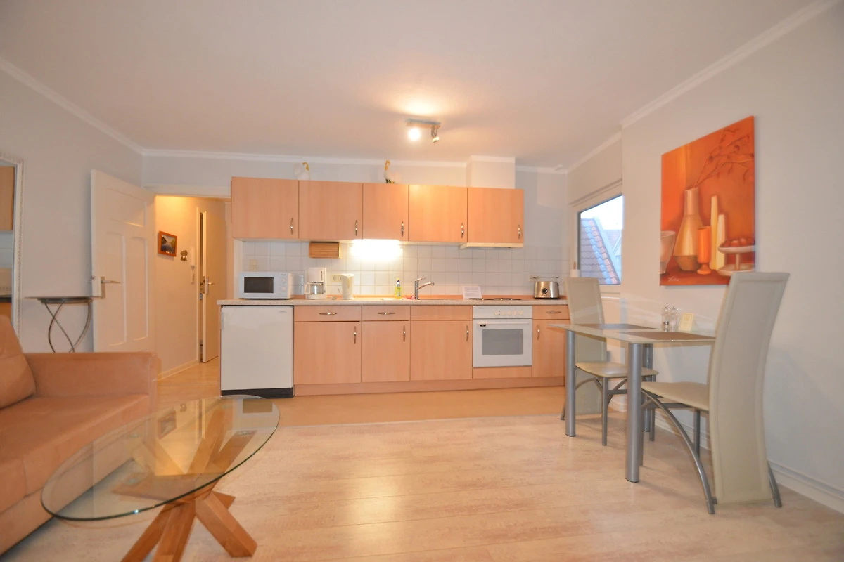 Die Ferienwohnung "Eider" im Gästehaus am Schiffbrückenplatz in Rendsburg verfügt über ein Schlafzimmer mit Doppelbett, einen Wohnraum mit integrierter Küchenzeile, Sofa mit Couchtisch, Esstisch, Flur, Duschbad und einen Abstellraum. Zusammen bieten diese Räumlichkeiten auf etwa 40 m² im 2. Obergeschoss ein behagliches Wohngefühl.