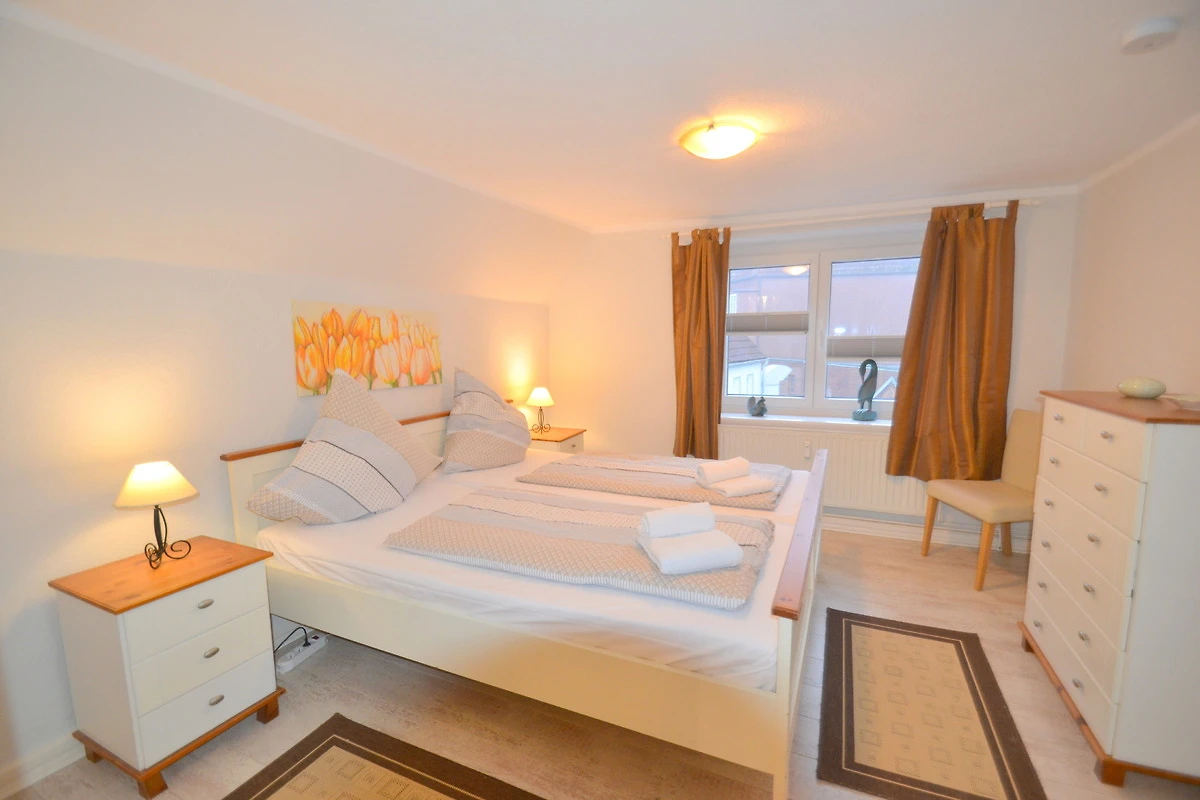 Die Wohnung befindet sich in zentraler Innenstadtlage direkt am Schiffbrückenplatz. Einkaufsmöglichkeiten und Restaurants sind in unmittelbarer Nähe, ebenso wie der Obereider-/Yachthafen, das Schwimmzentrum, die Untereider, Museen und das Theater. Ein Kinderbett steht zur Verfügung.