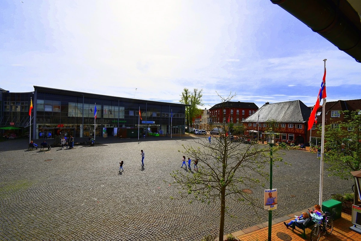 Die Wohnung befindet sich in zentraler Innenstadtlage direkt am Schiffbrückenplatz. Einkaufsmöglichkeiten und Restaurants sind in unmittelbarer Nähe, ebenso wie der Obereider-/Yachthafen, das Schwimmzentrum, die Untereider, Museen und das Theater.