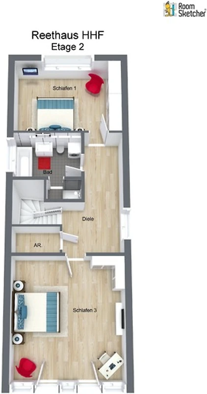 ? Loewe TV Geräte im Wohnzimmer und in den oberen zwei Schlafräumen