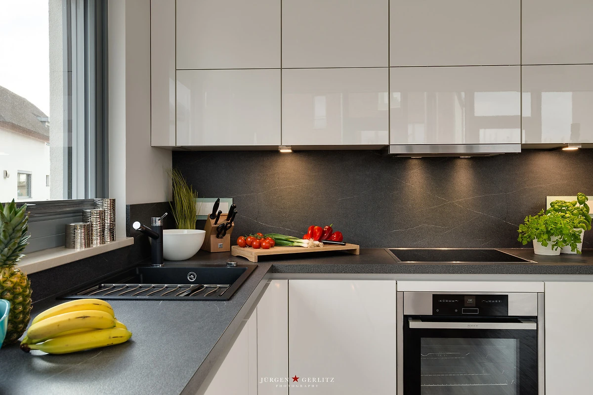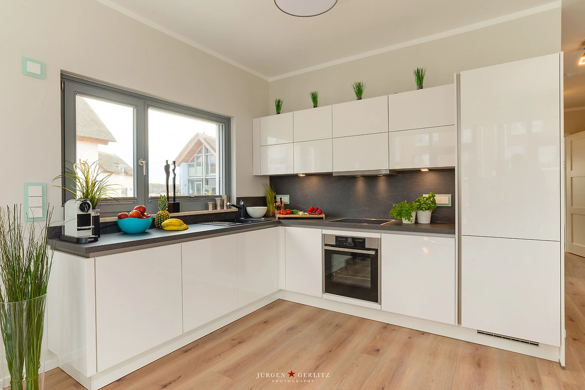 ? Moderne grifflose Hochglanzküche, komplett ausgestattet