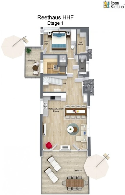 Schlafen, Küche, Bäder, Terrassenmöbel, etc.)