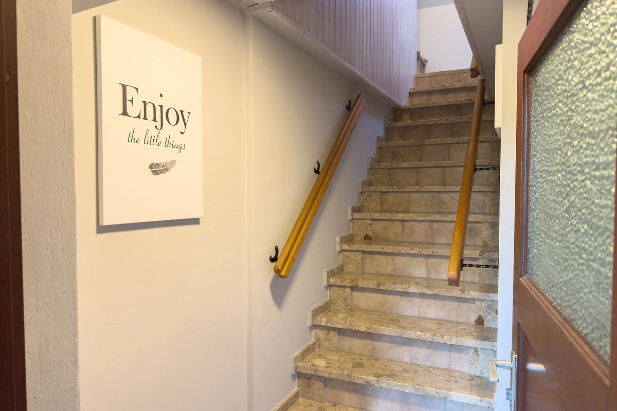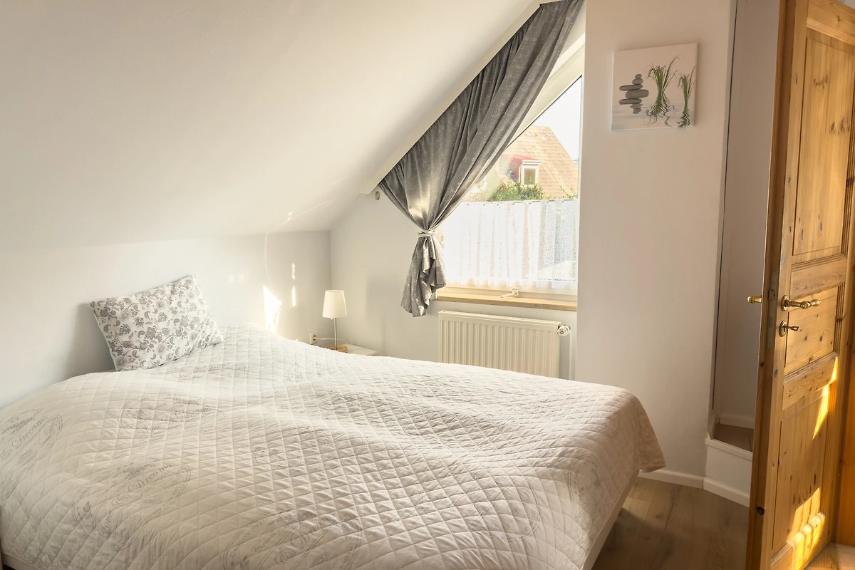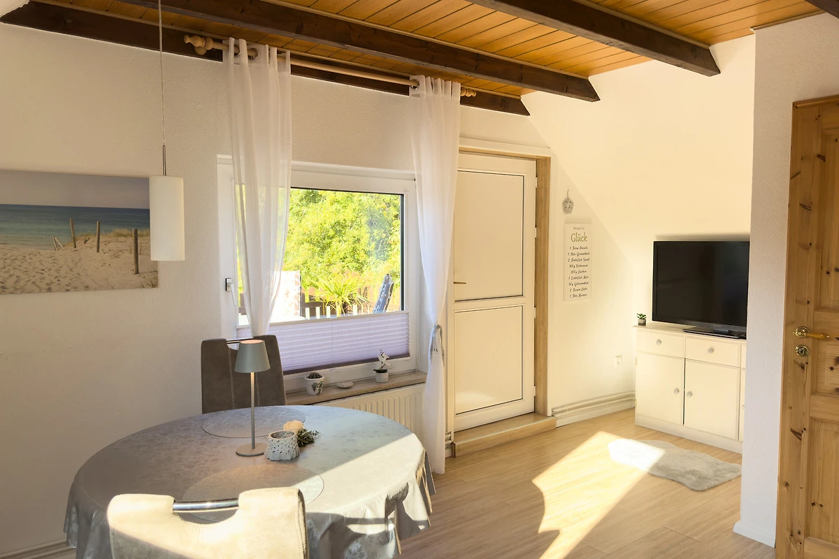 Ankommen, wohlfühlen, durchatmen: Unsere liebevoll eingerichtete 40 qm grosse Ferienwohnung im 1. Obergeschoss ist wie gemacht für Paare oder Alleinreisende, die Ruhe und Natur geniessen möchten. Ein separates Schlafzimmer, ein gemütliches Wohn- und Esszimmer sowie Ihr eigener Eingang sorgen für Privatsphäre und Komfort.