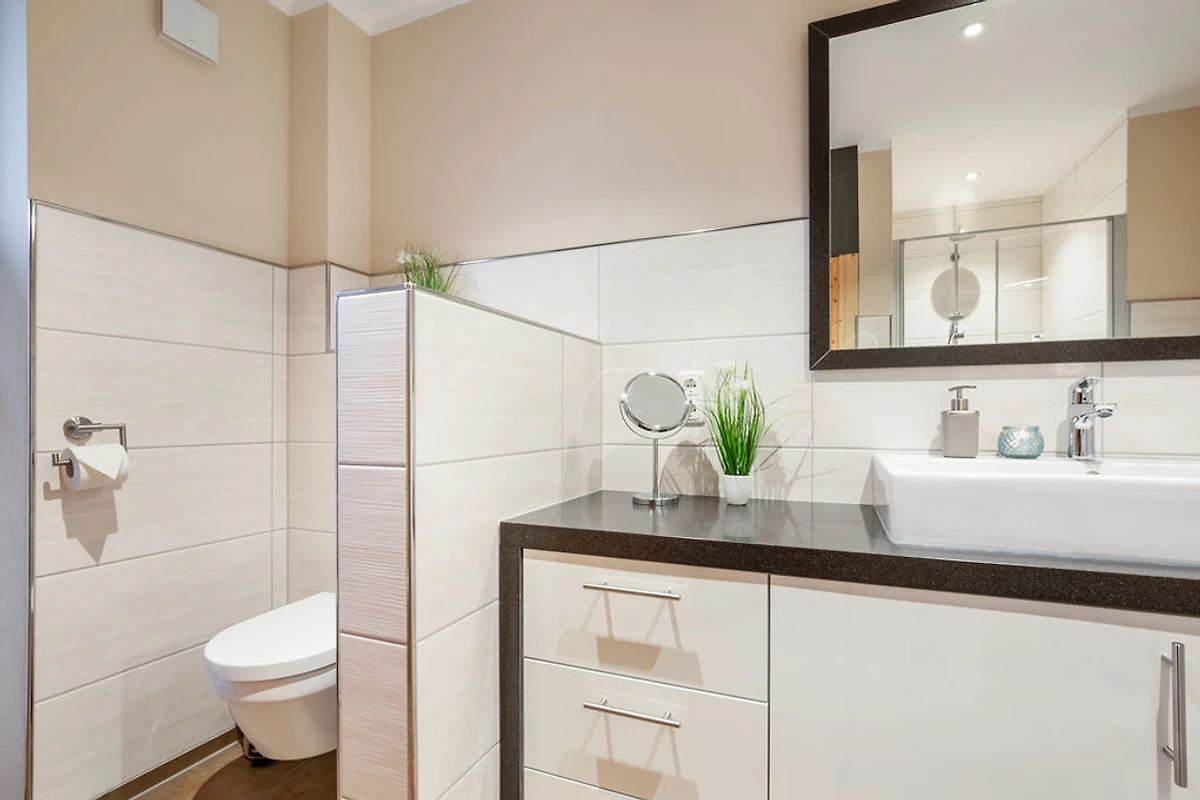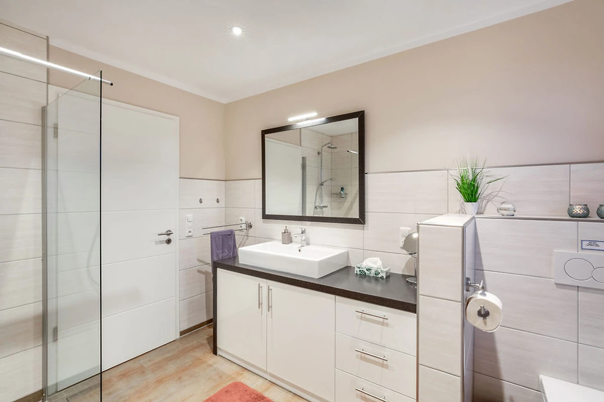 • 1 Badezimmer mit grosser ebenerdiger Dusche, WC und Waschmaschine EG