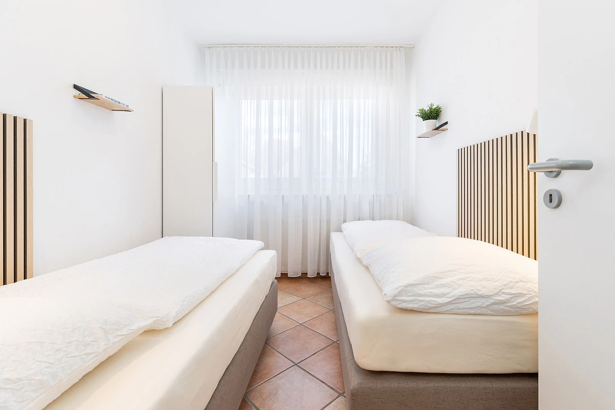 Das 3. Schlafzimmer hat zwei Boxspring-Einzelbetten (je 90 x 200 cm) mit einem Kleiderschrank von 100 cm.