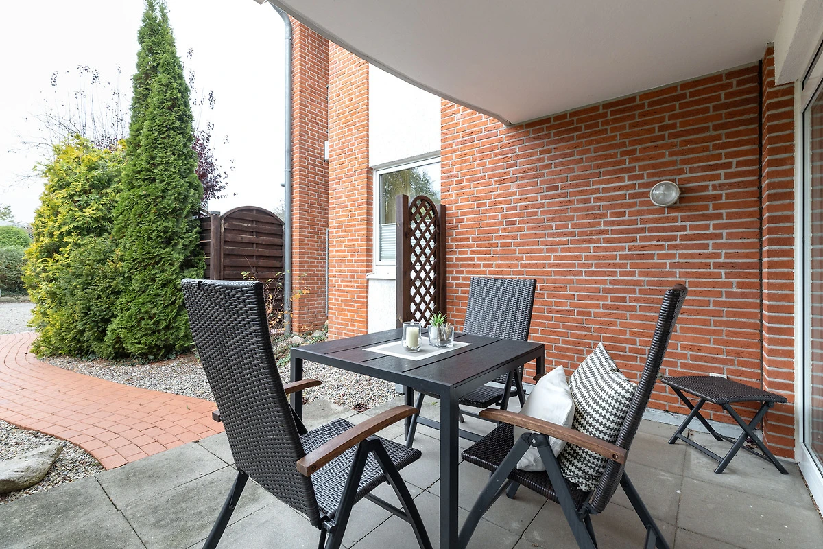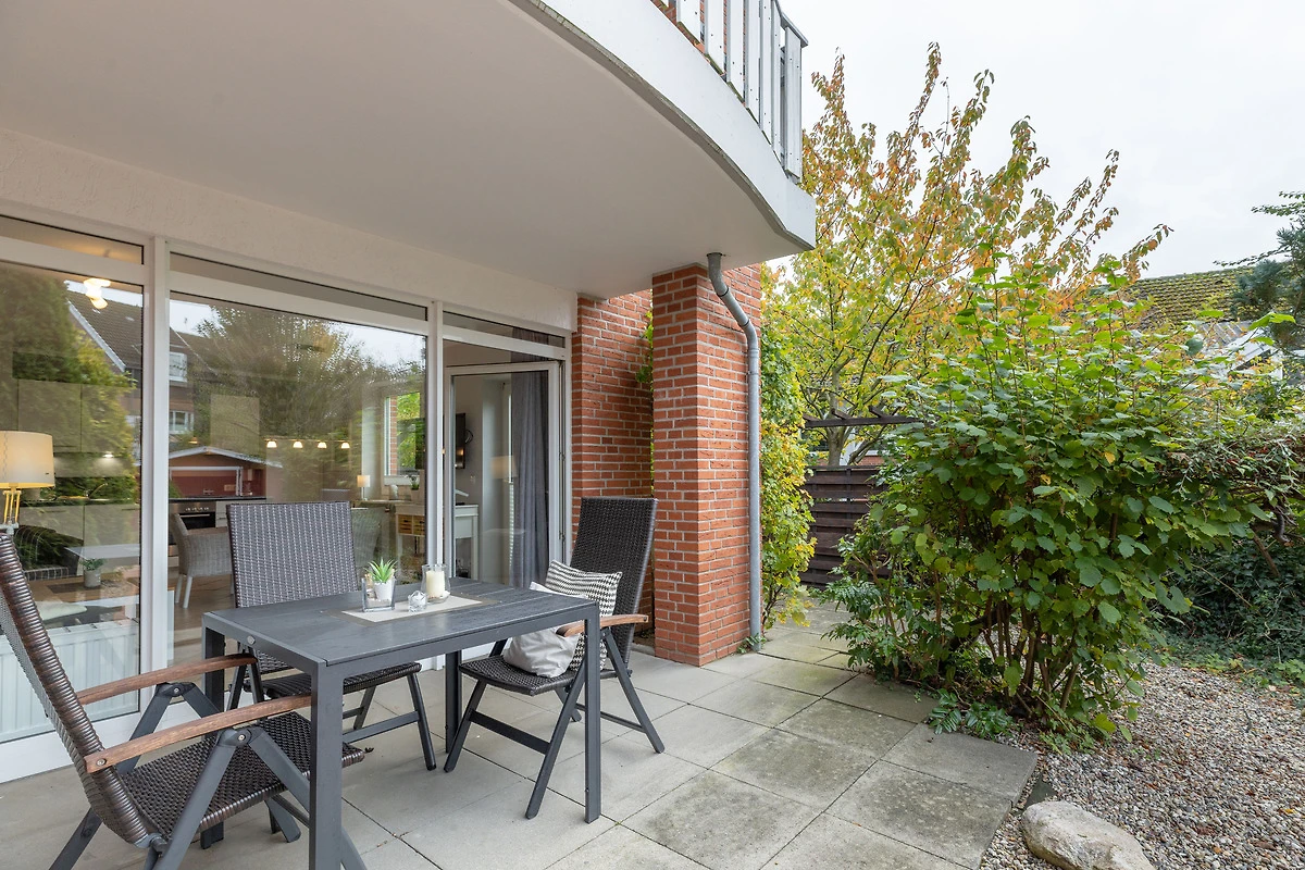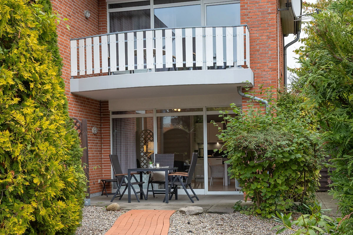 Harmonie und Urlaubsfreude strahlt dieses Apartment aus. Vom Wohnraum aus geniessen Sie den Blick ins Grüne. Die grosse Terrasse mit dem Gartenstück zur Süd- und Westseite lädt zum Sonnen und Faulenzen ein.