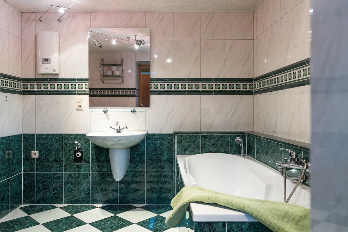 grosses Bad mit Badewanne und integrierter Dusche