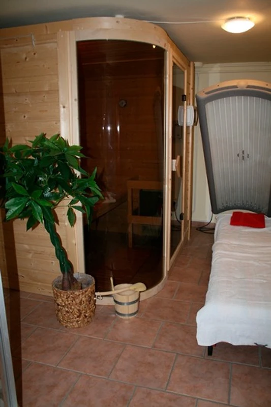Eine Sauna mit Solarium sorgen in den kalten Tagen für Ihr Wohlbefinden.