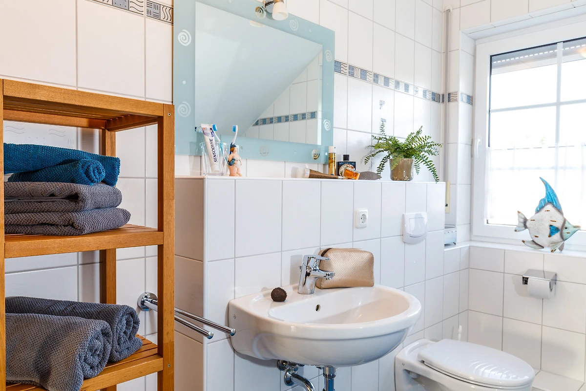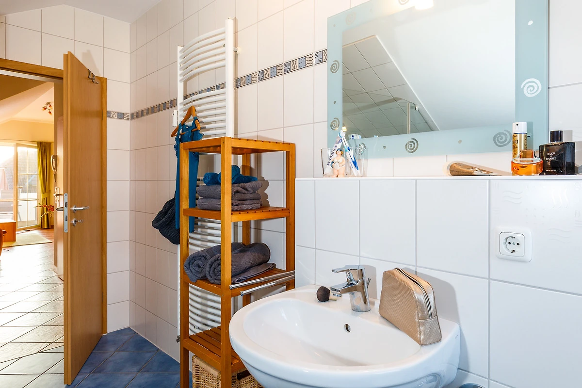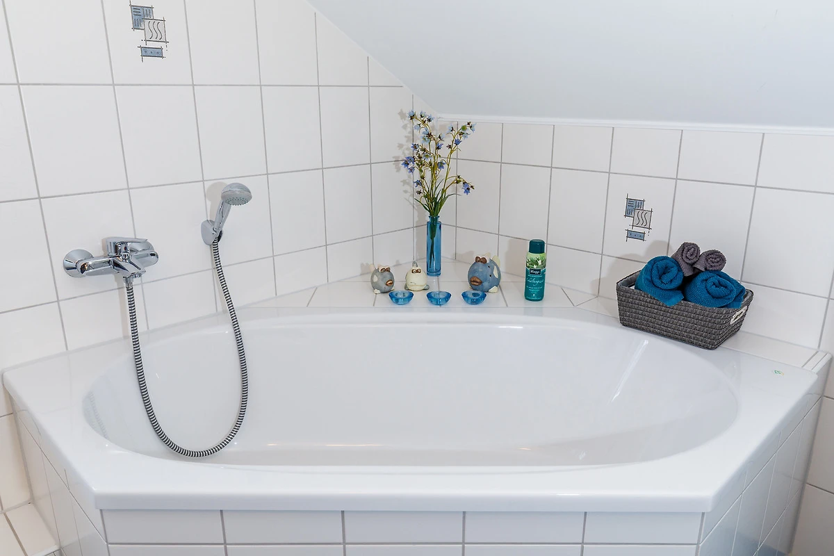 Das Badezimmer ist eine kleine Wellness-Oase mit einer luxuriösen Eck-Badewanne und einer separaten Dusche – ideal, um nach einem langen Tag am Strand zu entspannen. Für Ihre Unterhaltung sorgen ein SAT-Flat TV, ein DVD-Player und ein CD-Radio. Praktische Extras wie ein Bügelbrett und Bügeleisen sind ebenfalls vorhanden.
