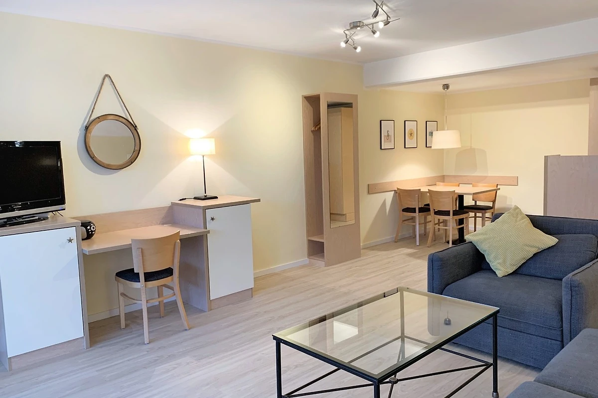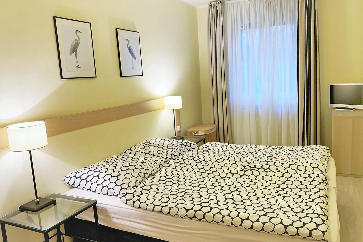 Geniessen Sie Ihr Frühstück in der Morgensonne auf Ihrer privaten, dem Kurpark zugewandten Terrasse, die direkt vor dem hellen Wohnbereich liegt. Zum Apartment gehört ein kostenloser Tiefgaragen-Stellplatz Nr. 107.(Höhe der Einfahrt 1,90m) Das Apartment befindet sich in dem Steigenberger Aparthotel, in der integrierten "Villa Kurpark" (Apartment 409), wird aber nicht vom Hotel betreut.