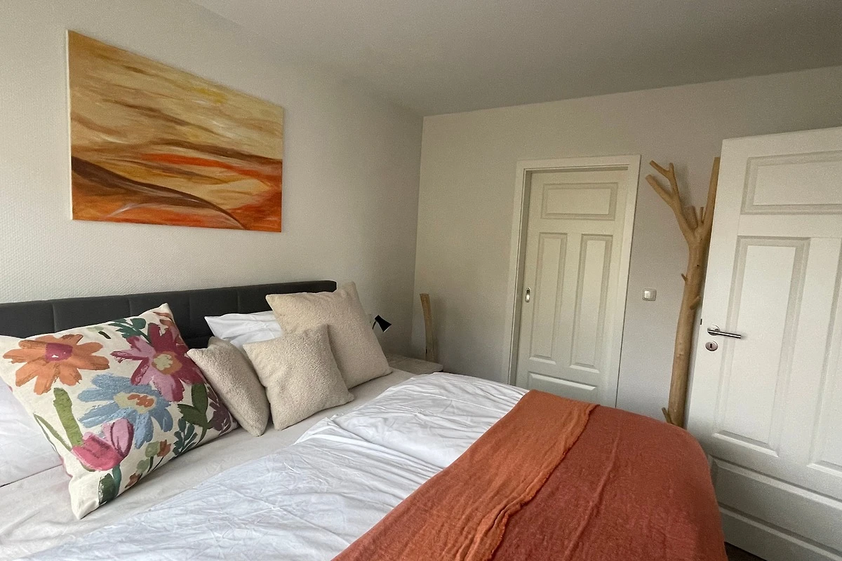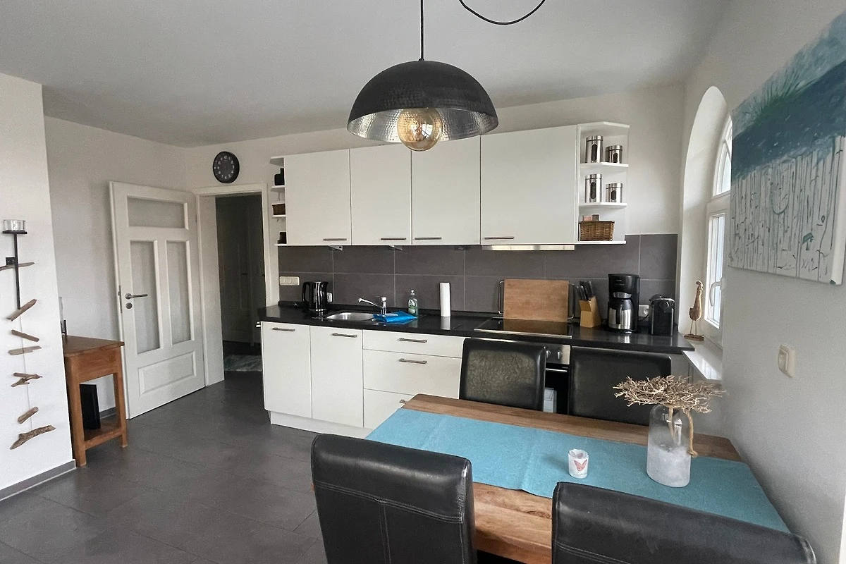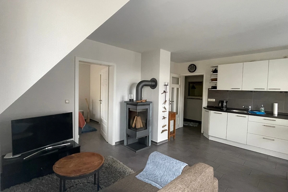 Die Ferienwohnung ist ausgestattet mit einem Wohnraum, zwei Schlafräumen (1x Doppelbett , 1x Futonbett (160 cm breit)), einer komplett eingerichteten