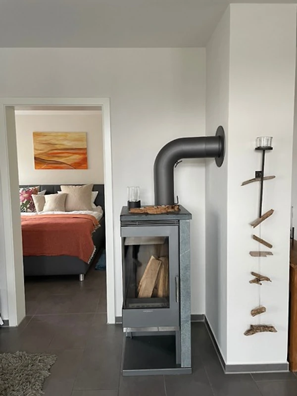 Küchenzeile und einem Badezimmer mit Dusche und WC. Zur weiteren Ausstattung gehören ein Kaminofen, ein Sat-TV, WLAN, eine Musikanlage sowie