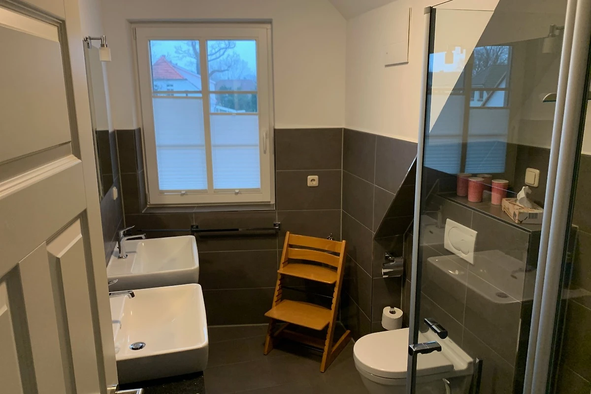 ein Kinderhochstuhl. Ein Pkw-Stellplatz und ein Abstellschuppen stehen Ihnen zur Verfügung. Die Nichtraucherwohnung in Hafennähe befindet sich im 1. OG und besitzt zwei Balkone mit Gartenmöbeln.