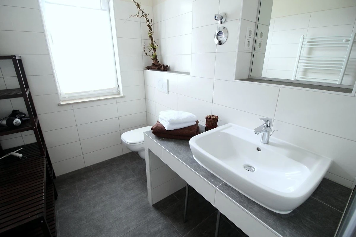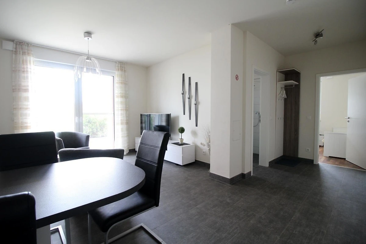 Die Ferienwohnung ist durchgängig gefliest und mit einer Fussbodenheizung ausgestattet. Die Einbauküche ist mit einem Kühlschrank mit Gefrierfach, Herd mit Cerankochfeld und Backofen, sowie einem Geschirrspüler ausgestattet. Daneben sind eine Mikrowelle, eine Kaffeemaschine, ein Wasserkocher und ein Toaster sowie hochwertiges Geschirr und Besteck vorhanden.