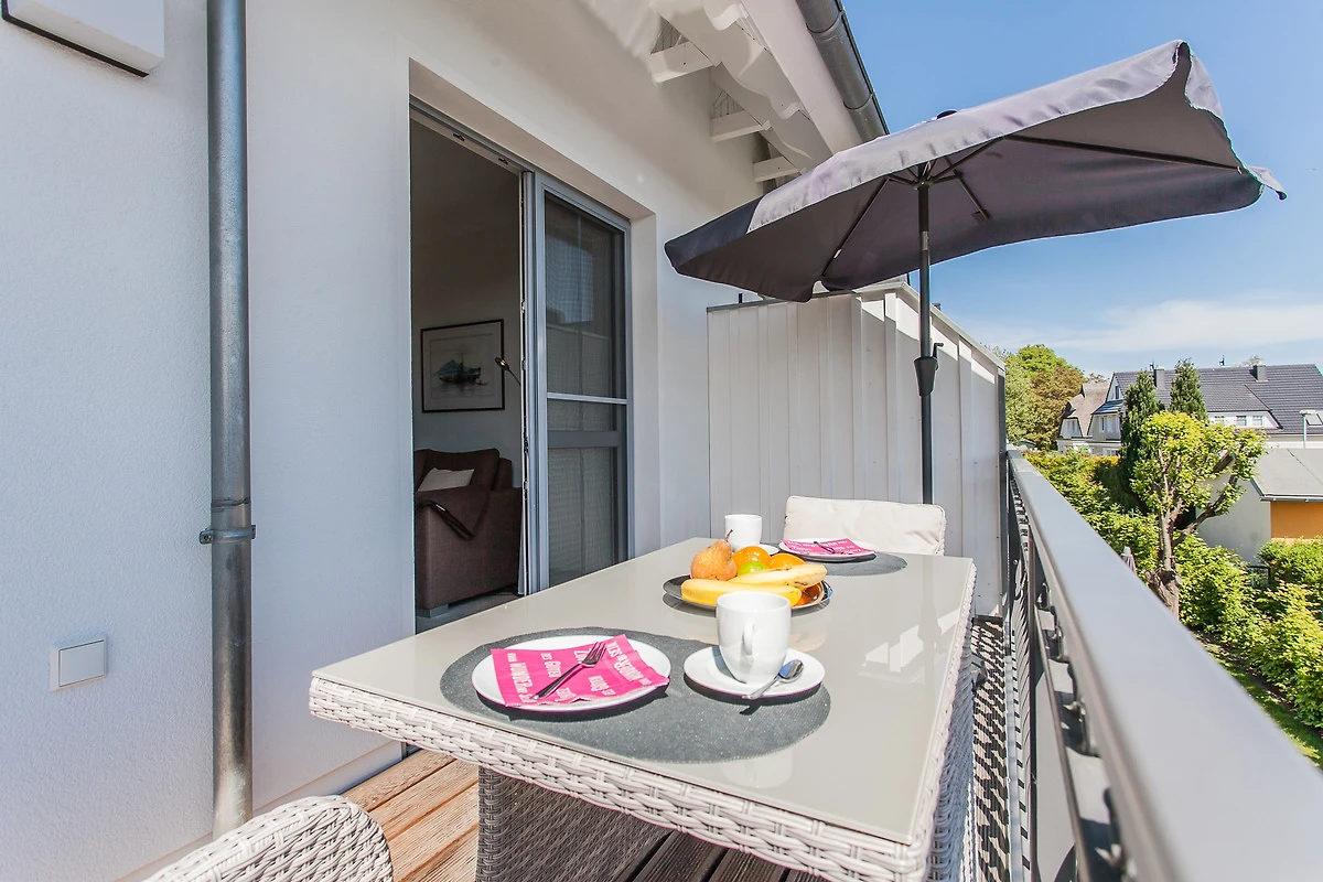 Weiter ist die Ferienwohnung mit Fliegengitter ausgestattet und besitzt einen Süd-Balkon mit Gartenmöbeln.
