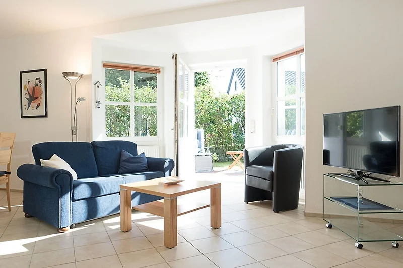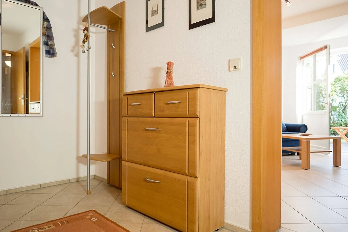 Bäcker, Supermarkt und Fahrradverleih sind etwa 300 Meter entfernt. Den Strand erreichen Sie nach ca. 500 Metern. Es stehen Ihnen ein PKW Stellplatz und ein abschliessbarer Fahrradschuppen für 2 Fahrräder zur Verfügung.