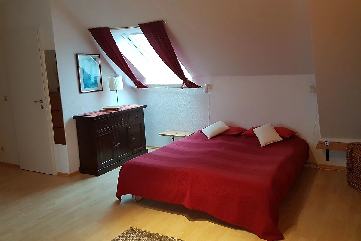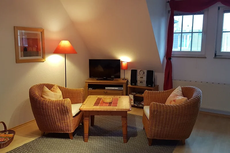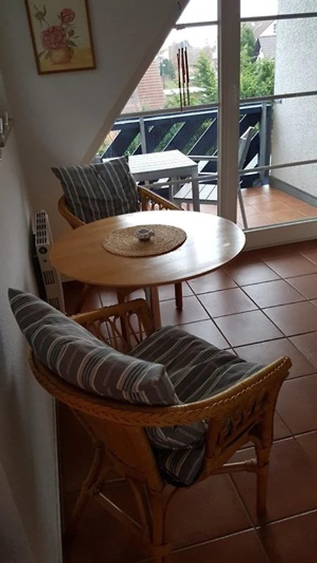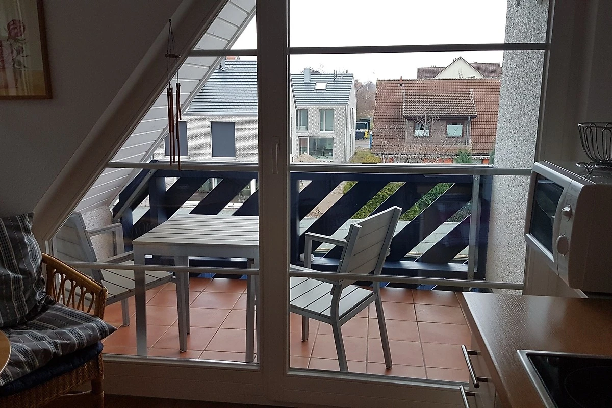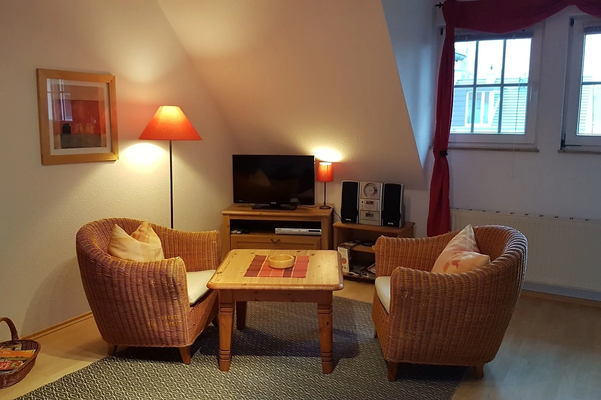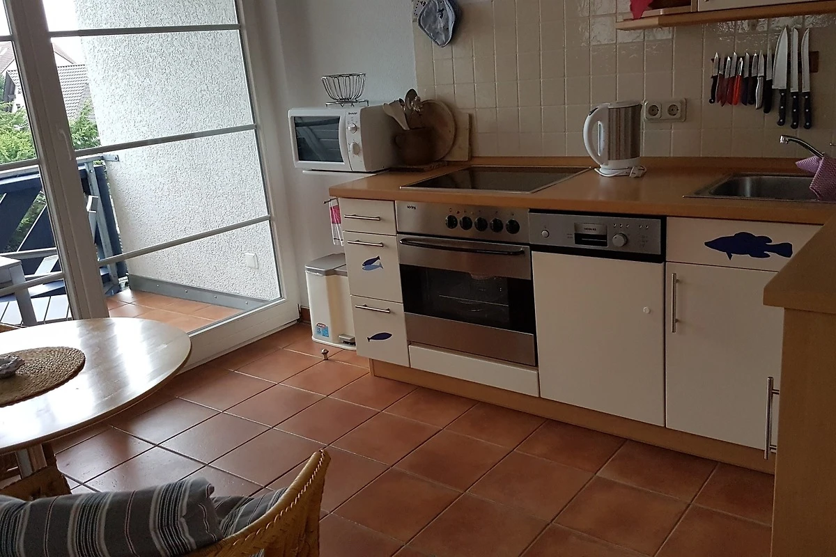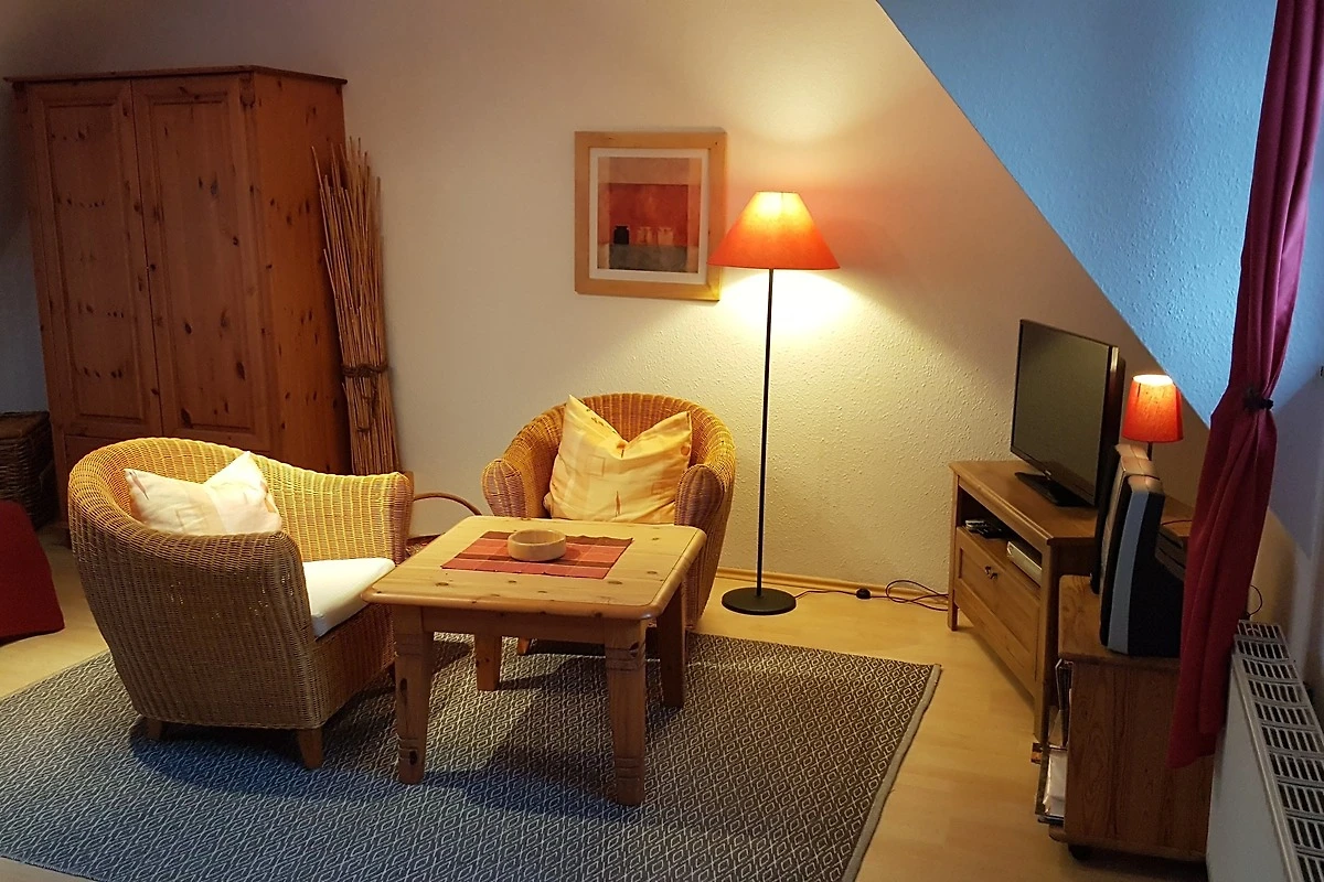 Es ist ausgestattet mit einem Doppelbett ( durchgehende Matratze ), einer Sitzgruppe, SAT-TV und Radio, einer Küchenzeile sowie einem Bad mit Dusche und WC. Das Appartement befindet sich im 2. Obergeschoss und besitzt einen Balkon auf dem das Grillen nur mit einem Elektrogrill gestattet ist.