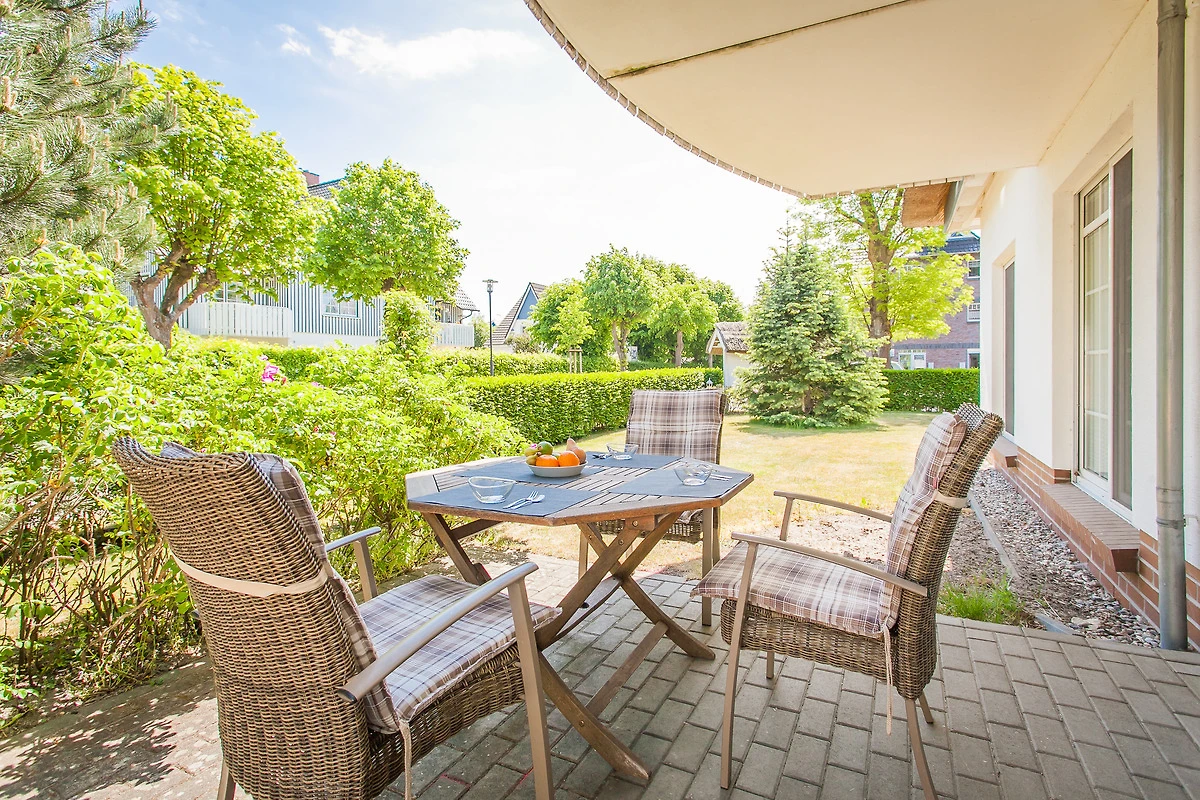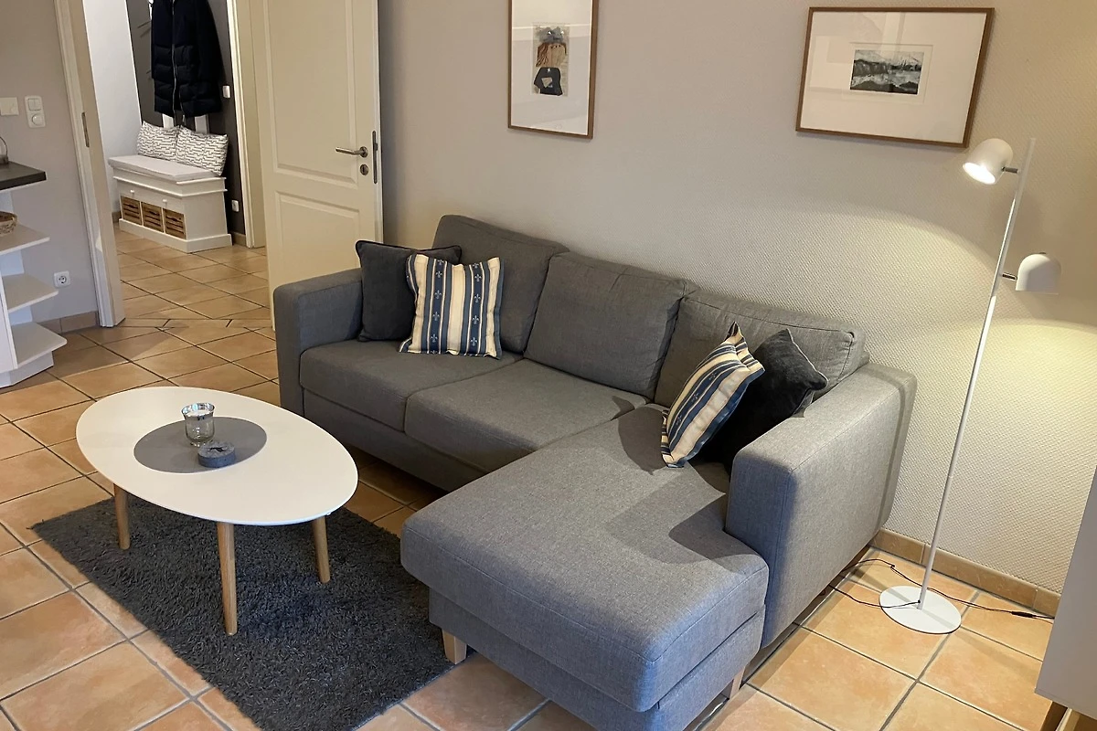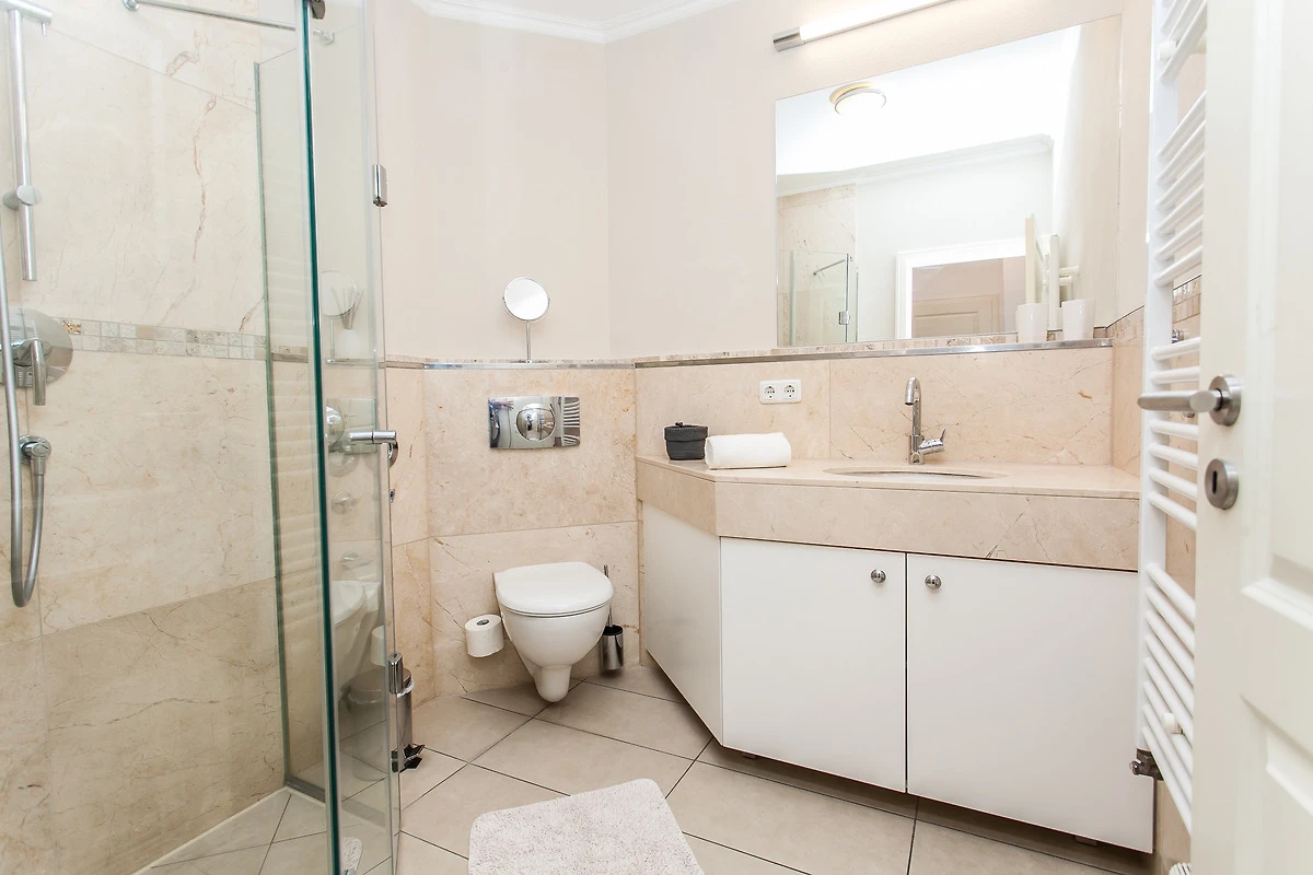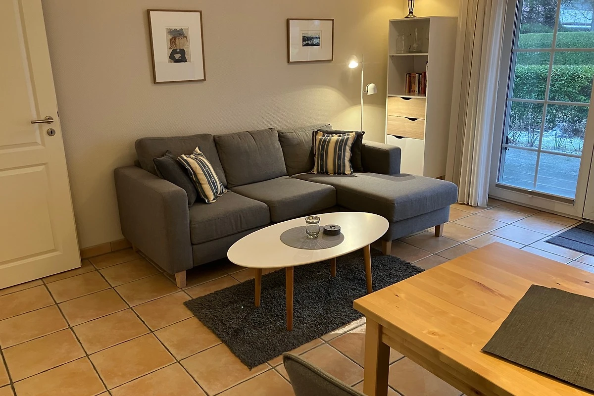 Wohnbereich, DVD Player, Bose-Stereoanlage, ein Badezimmer in Marmor mit ebenerdiger Dusche sowie einer 20 m²-grossen Terrasse ( Ost-Ausrichtung) mit Gartenmöbeln, eine voll ausgestattete Küchenzeile. Ihnen steht ein Tiefgaragenstellplatz (Nr. 1) sowie Waschküche und Fahrradkeller zur Verfügung. WLAN kostenfrei vorhanden. In der Nichtraucherwohnung sind Haustiere nicht gestattet.