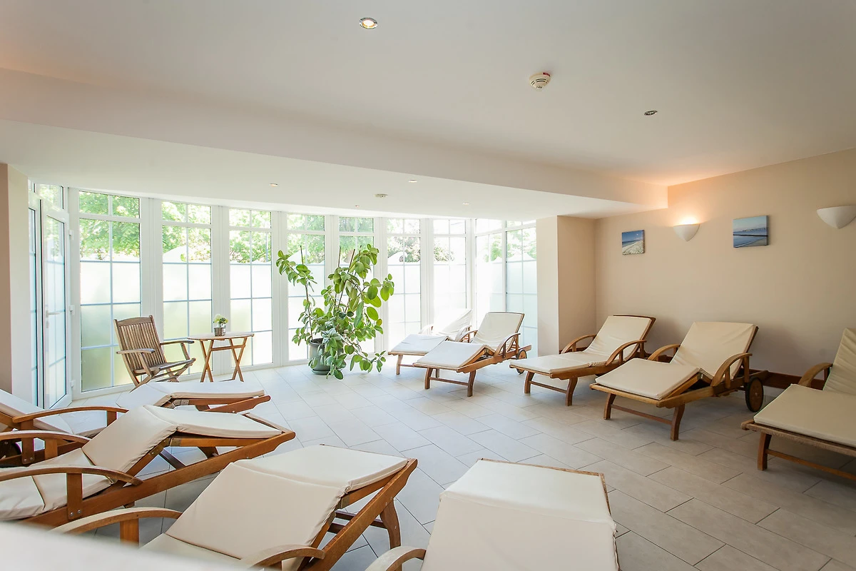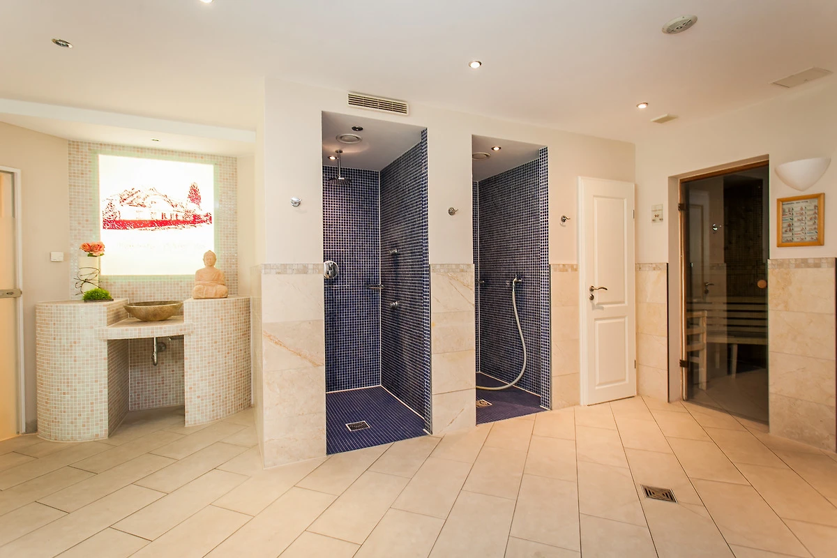 Wellnesslandschaft: Ruhe und Entspannung in stilvollem Ambiente. Finnische Sauna, Infrarot-Kabine, Dampfbad, Ruheraum, Erlebnisduschen, Trinkbrunnen und grossem Ruheraum.