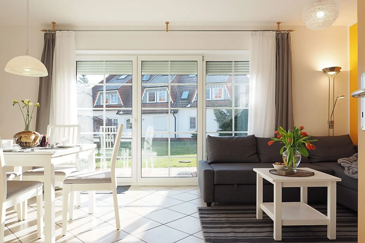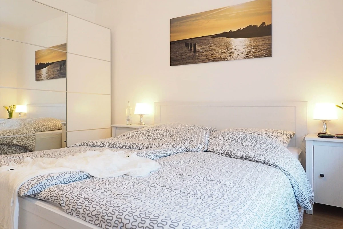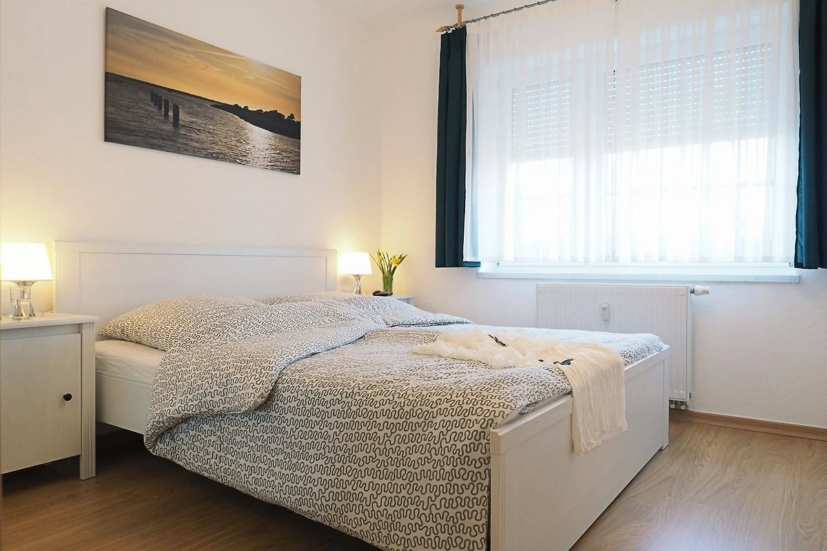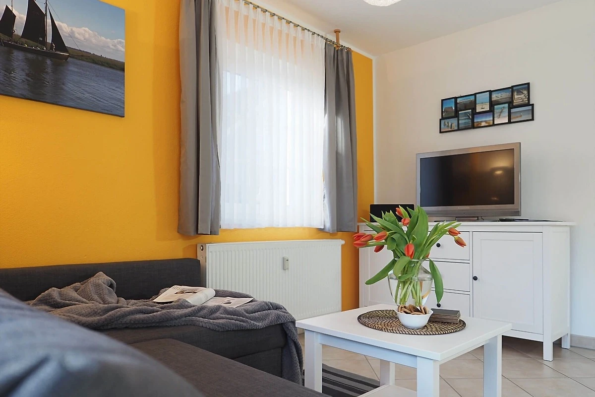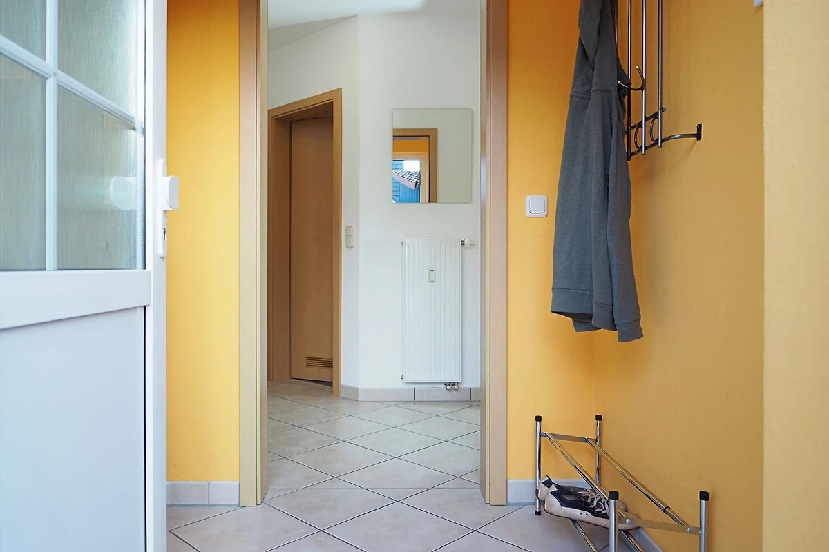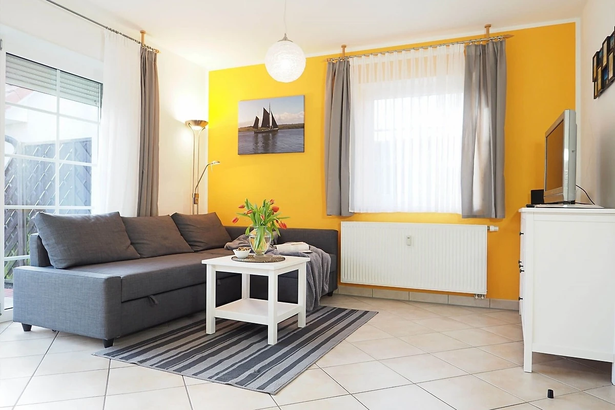 Die Erdgeschosswohnung bietet zwei Schlafräume (1x1 Doppelbett, 1x2 Einzelbetten), einen Wohnbereich mit einer voll ausgestatteten Küchenzeile und einem Bad mit Dusche und WC. Zur weiteren Verfügung stehen ein Satelliten - TV, eine Bluetooth CD Mikroanlage, ein Haartrockner, ein Standwäschetrockner, ein kleines Bügelbrett und Bügeleisen.