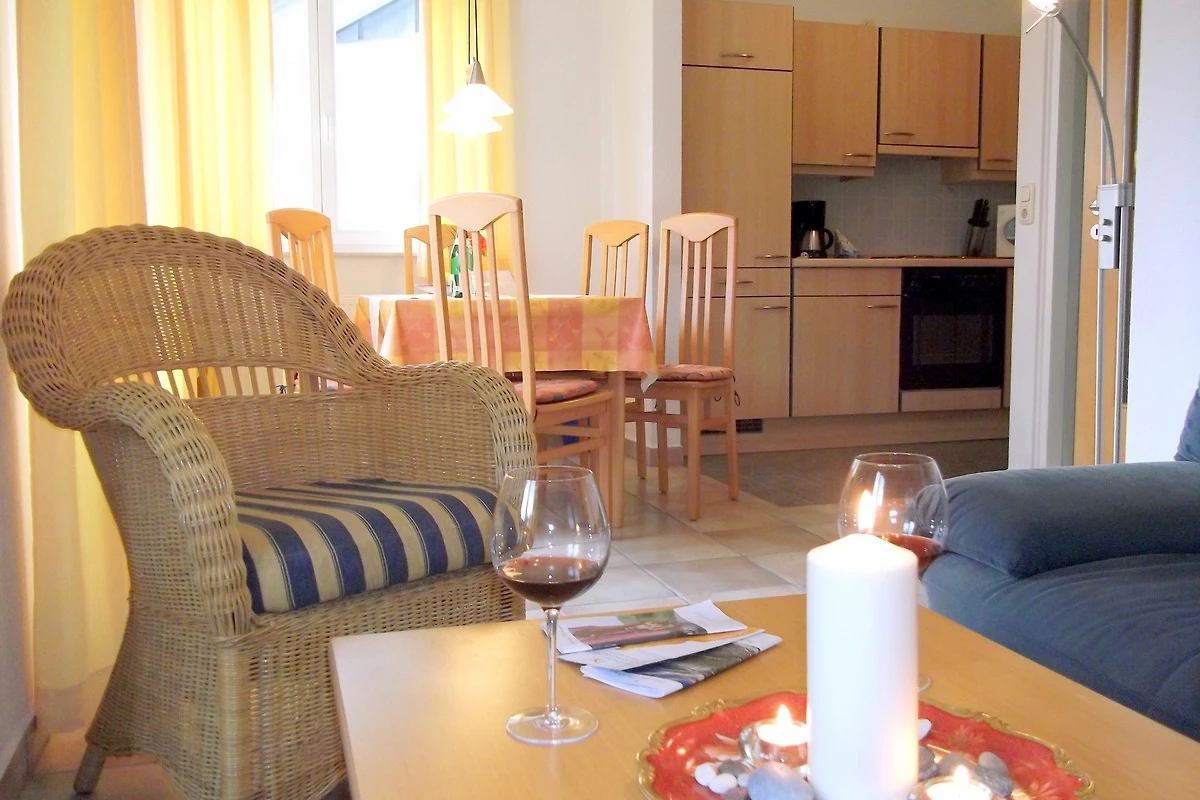 Die helle geräumige Ferienwohnung befindet sich in einem im Jahr 2000 in erbauten Haus.Es liegt neben dem Restaurant Meeresrauschen/Schnitzelhus zentral am Hauptstrand mit direktem Aufgang zur 100m entfernten Ostsee.