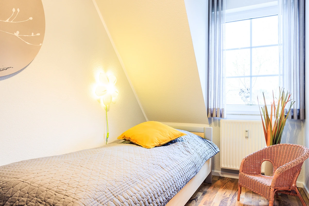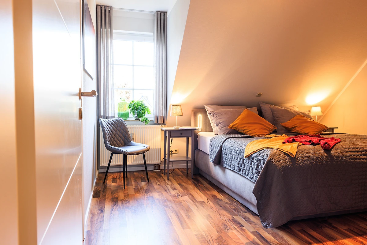 Die Wohnung verfügt über drei geschmackvoll eingerichtete Schlafräume, darunter zwei komfortable Boxspringbetten und ein gemütliches Einzelbett, die für erholsame Nächte sorgen.