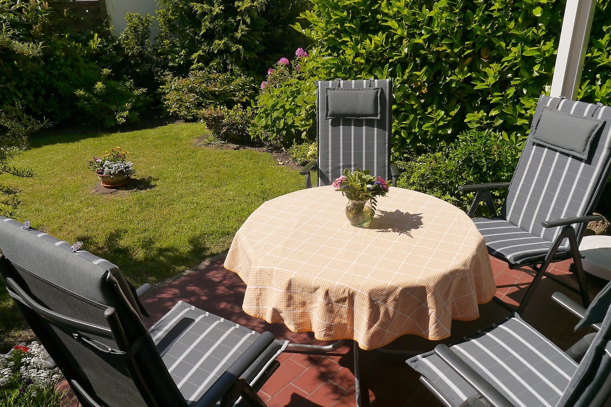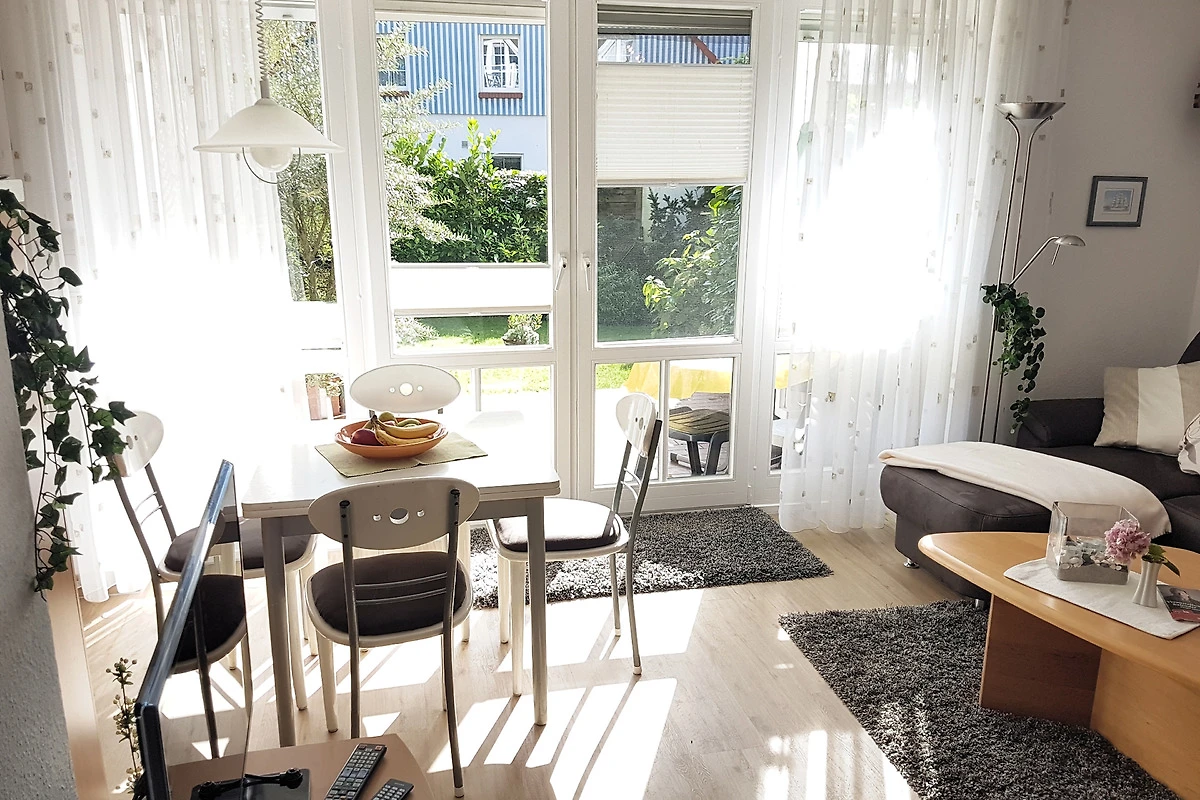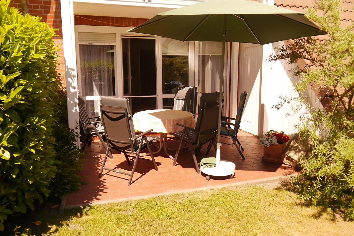 Ausserdem stehen Ihnen in der Erdgeschosswohnung eine Terrasse mit Gartenmöbeln, Sonnenschirm, Wäscheständer und Elektrogrill, sowie ein PKW-Stellplatz direkt vor dem Haus und ein Abstellraum für Fahrräder zur Verfügung. Haustiere sind in dieser Wohnung nicht gestattet.