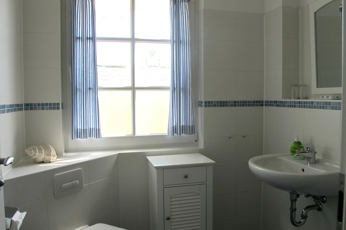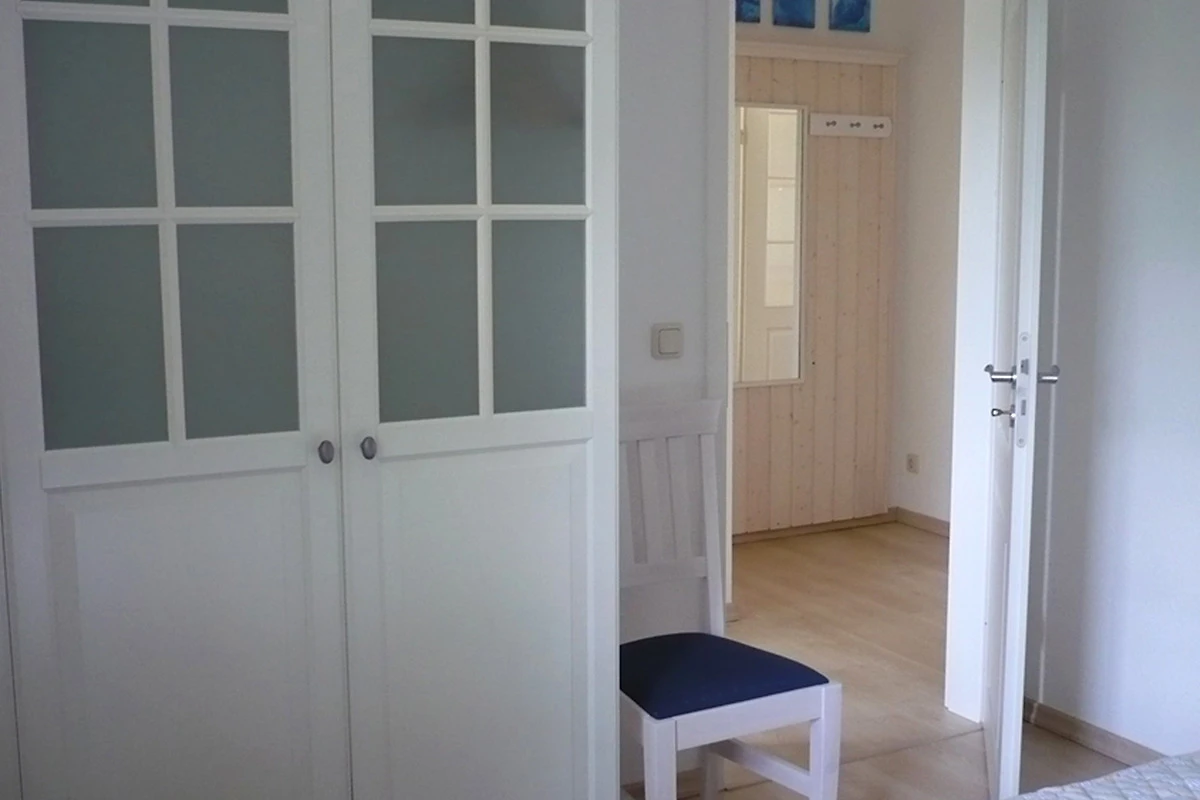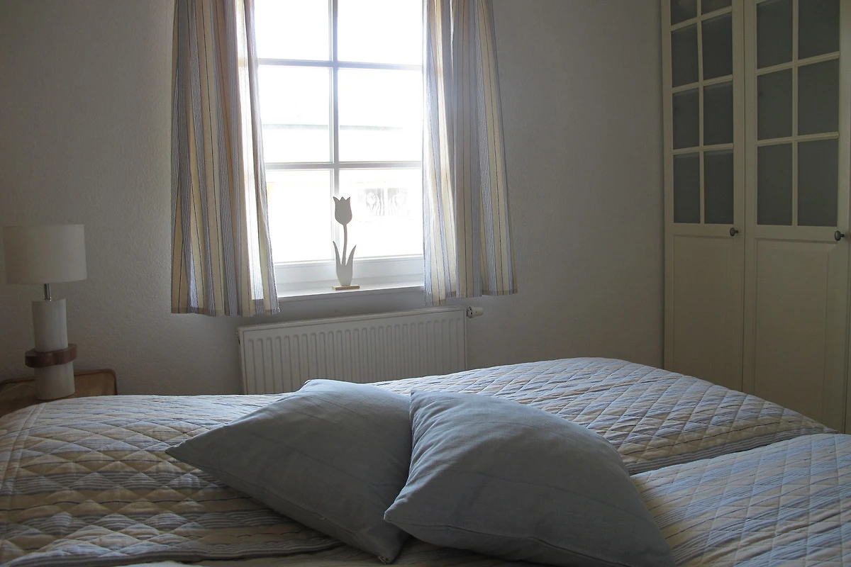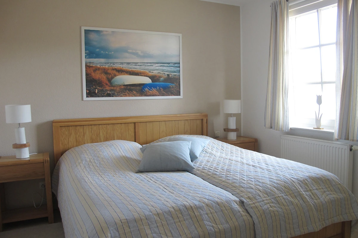 Das Schlafzimmer hat ein Doppelbett 180 x 200 cm. Das Bad bietet ein grosses Fenster mit Tageslicht.