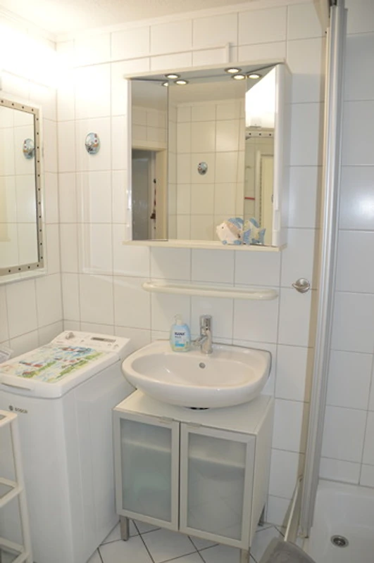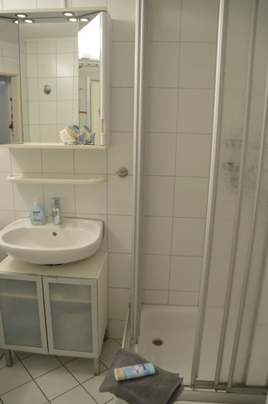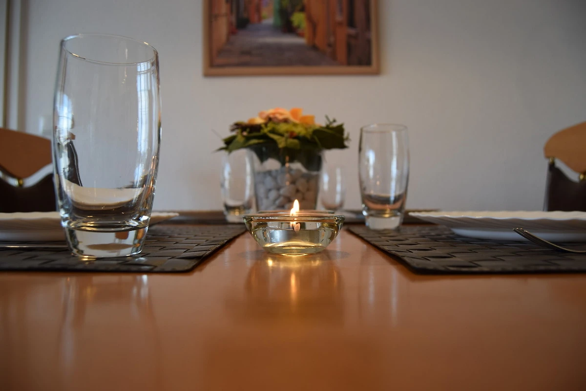 Den Mittelpunkt des Appartements bildet das Wohnzimmer mit Essbereich. Am grossen Esstisch lässt es sich wunderbar frühstücken und auf der gemütlichen Couch kann man den Abend vor dem Fernseher ausklingen lassen. Es gibt ein Schlafzimmer mit Doppelbett (1,80 x 2,00 m) sowie ein weiteres Schlafzimmer mit 2 Einzelbetten (0,90 x 2,00 m). Bettwäsche und Handtücher können auf Wunsch dazu gebucht werden. Gerne dürfen Sie auch Ihren Hund mitbringen.