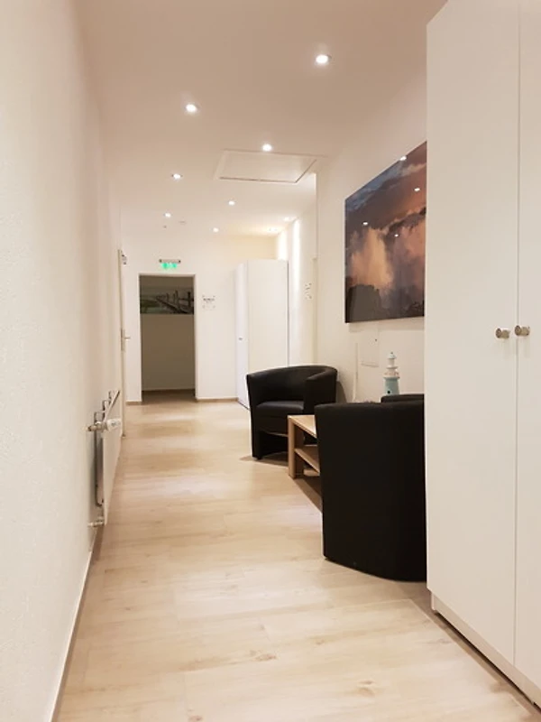 Somit verfügen die Räume über LED Downlights als Decken-/Raumbeleuchtung,verschiedene in hellen Pastelltönen gestrichen Wände.