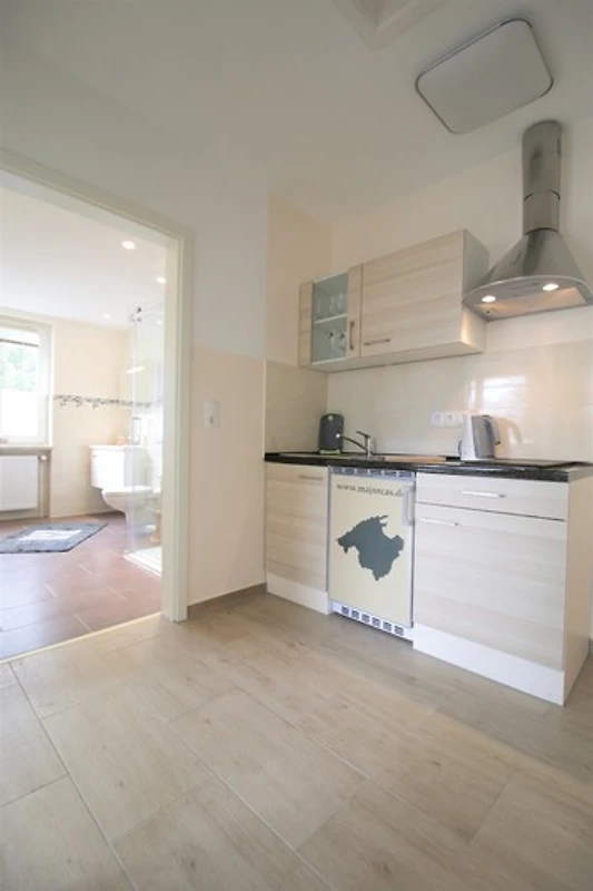 Der Küchenbereich der Wohnungen ist funktionell ausgestattet mit Kühlschrank und doppeltem Cerankochfeld mit Dunstabzugshaube. Kaffeemaschine, Toaster , Eierkocher sowie alle für den täglichen Gebrauch erforderlichen Dinge sind vorhanden.