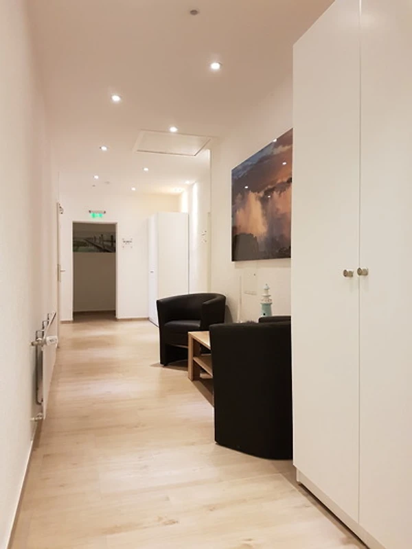 Somit verfügen die Räume über LED Downlights als Decken-/Raumbeleuchtung, verschiedene in hellen Pastelltönen gestrichen Wände.