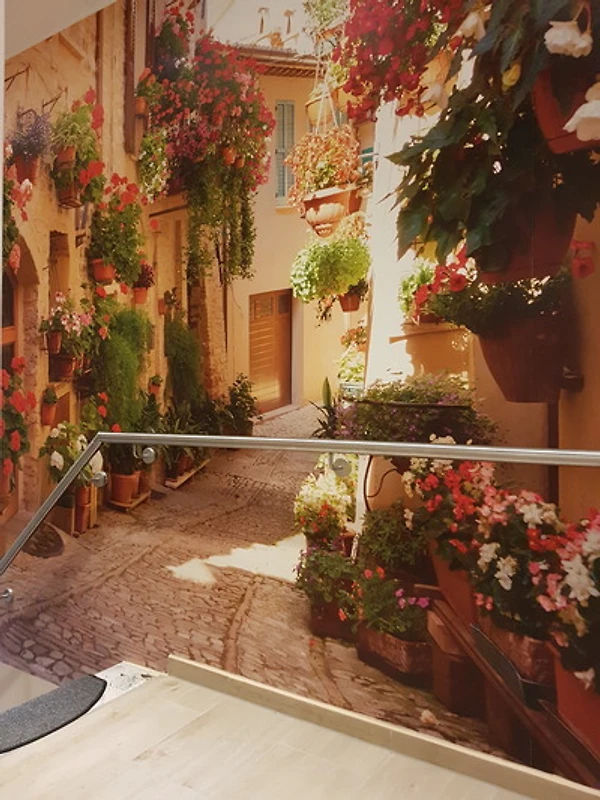 Somit verfügen die Räume über LED Downlights als Decken-/Raumbeleuchtung,verschiedene in hellen Pastelltönen gestrichen Wände.