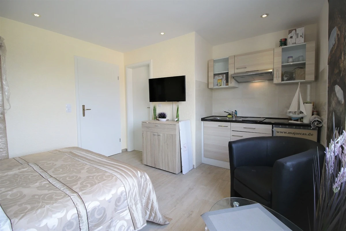 Der Küchenbereich der Wohnungen ist funktionell ausgestattet mit Kühlschrank und doppeltem Cerankochfeld mit Dunstabzugshaube. Kaffeemaschine, Toaster , Eierkocher sowie alle für dem täglichen Gebrauch erforderlichen Dinge sind vorhanden.