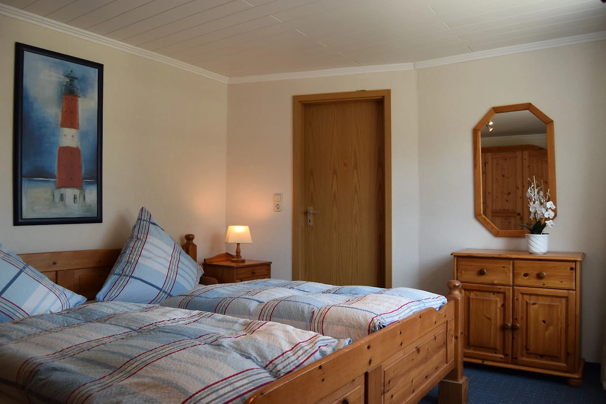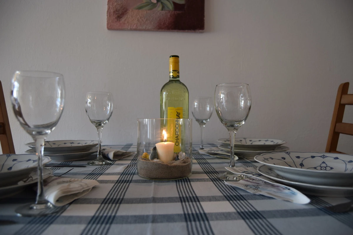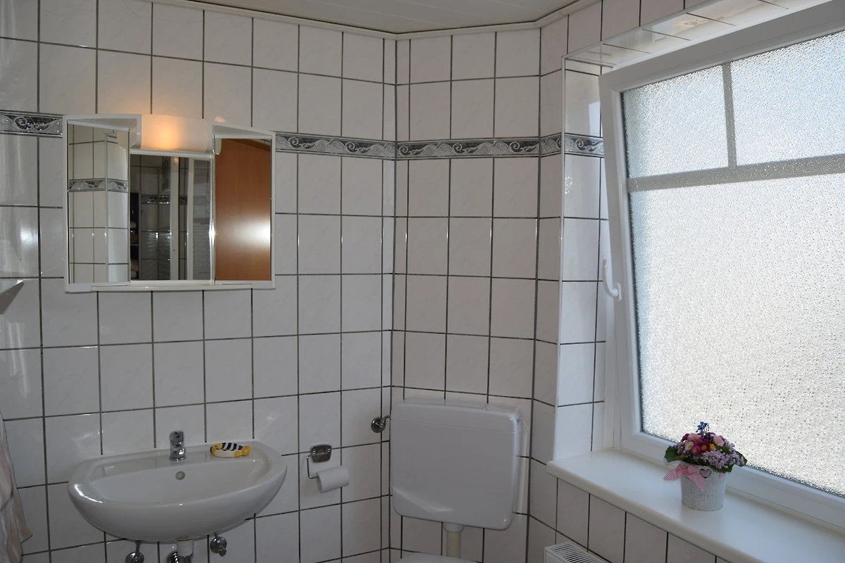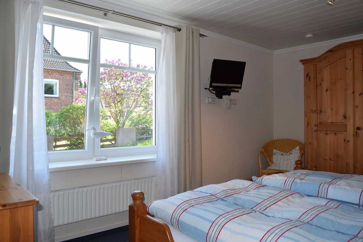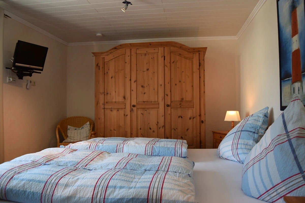 Die Wohnung hat eine Grösse von 62 qm und ist ideal für bis zu 4 Personen und ein Kind (bis 6 Jahre). Sie betreten den grosszügigen Flur, der mit einem Schuhschrank, einer Garderobe und einem Spiegel mit Ablage ausgestattet ist. Vom Flur aus geht es in die einzelnen Wohnräume ab. Die separate Küche ist mit einem Kühlschrank, einem Gefrierfach, einem Ceranfeld-Herd mit Backofen, einer Mikrowelle, einer Kaffee-Padmaschine sowie einer Essgelegenheit mit ausreichend Sitzmöglichkeiten sehr gut ausgestattet. Im hellen, freundlichen Badezimmer befindet sich eine Dusche/ WC, Waschbecken, ein Hocker, ein Spiegelschrank, ein Föhn und ein grosser Drehschrank mit Spiegel. Das Schlafzimmer ist mit einem grossen Doppelbett (2,00 cm x 2,00 cm) und einem kleinen Flachbildfernseher ausgestattet. Im Wohnzimmer stehen 2 Schlafsofas zur Verfügung (1,50 cm x 2,00 cm und 1,30 cm x 2,00cm). Ausserdem ist das Zimmer mit einem Flachbildfernseher und einer gemütlichen Sitzgruppe, einem Couchtisch und einem Essbereich ausgestattet. Von hier gelangen Sie direkt auf die überdachte Terrasse. Machen Sie es sich gemütlich und geniessen Sie ein sonniges Frühstück mit Blick auf den Hof und ein Gläschen Wein am Abend. Auch für einen PKW-Stellplatz ist gesorgt: Dieser befindet sich zwar nicht direkt vor dem Haus, ist aber in der gleichen Strasse und fest für Sie reserviert. Auch an die Kleinen wird gedacht, so stellen wir Ihnen auf Wunsch ein Kinderreisebett (komplett ausgestattet), einen Hochstuhl und einen Buggy (Regenschutz, Sonnenschirm, Fusssack) zur Verfügung. Waschmaschine und Trockner stehen gegen eine Gebühr zur Verfügung sowie ein Bügelbrett und ein Bügeleisen. Auch einen Hund heissen wir herzlich willkommen (bis max. 15 kg).